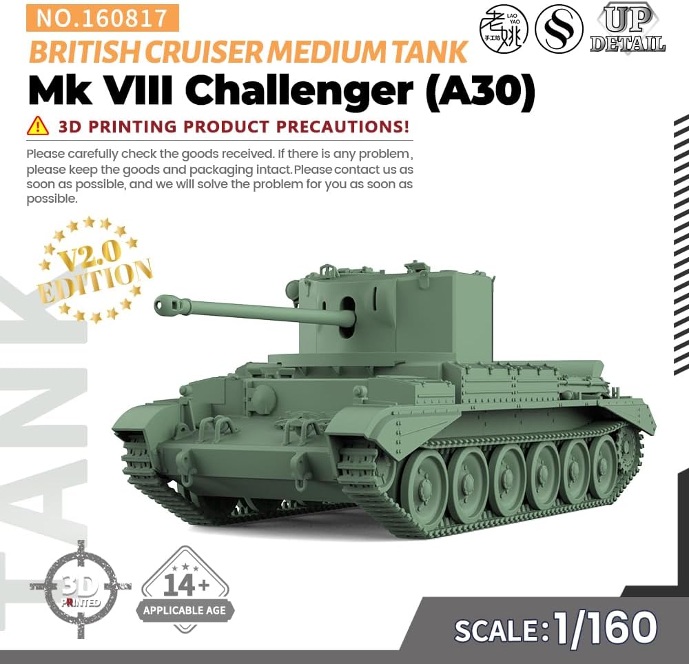 MRY-SFW SS160817 Kit modello militare ferroviario in SCALA 1/160 N Incrociatore britannico Mk VIII Challenger (A30) Carro armato medio