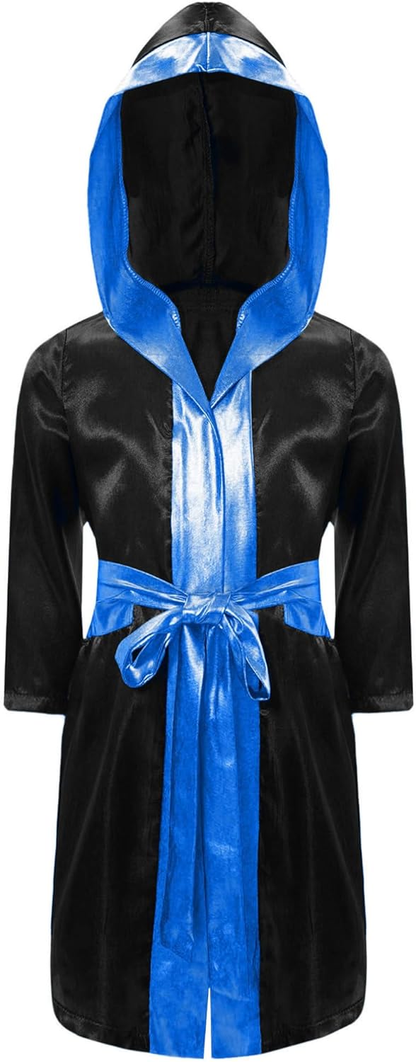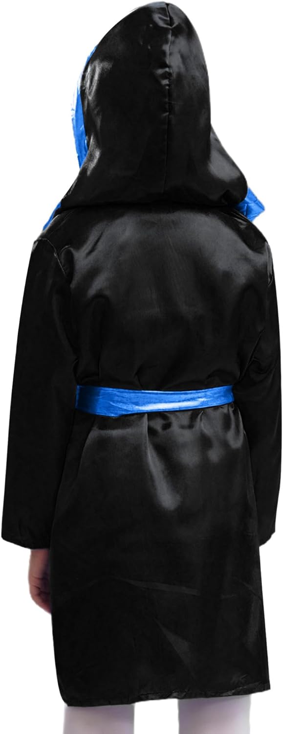 Imposta include : 1 tunica da boxe, 1 cintura Condizione : Nuovo senza cartellino Materiale : 100% poliestere Etichetta No.---|---Dimensione Consigliata---|-----Lunghezza----|------Torace-----|------Spalla------|-----Sleeve-----|-------Belt--- ------6---------|----------5-6 anni----------|---26.5"/67.5cm---|-----35"/89cm----|----12"/30.5cm----|----15"/38cm----|---70.5"/180cm ------8---------|----------7-8 anni----------|---28.5"/72.5cm---|-----37"/94cm----|---12.5"/32.5cm---|---16.5"/42cm---|---70.5"/180cm ------10--------|----------9-10 anni---------|---30.5"/77.5cm---|-----39"/99cm----|---13.5"/34.5cm---|----18"/46cm----|---70.5"/180cm ------12--------|---------11-12 anni---------|---32.5"/82.5cm---|---40.5"/104cm---|----14"/36.5cm----|---19.5"/50cm---|---70.5"/180cm ------14--------|---------13-14 anni---------|---34.5"/87.5cm---|---42.5"/109cm---|----15"/38.5cm----|----21"/54cm----|---70.5"/180cm ------16--------|---------15-16 anni---------|---36.5"/92.5cm---|---44.5"/114cm---|---15.5"/40.5cm---|---22.5"/58cm---|---70.5"/180cm