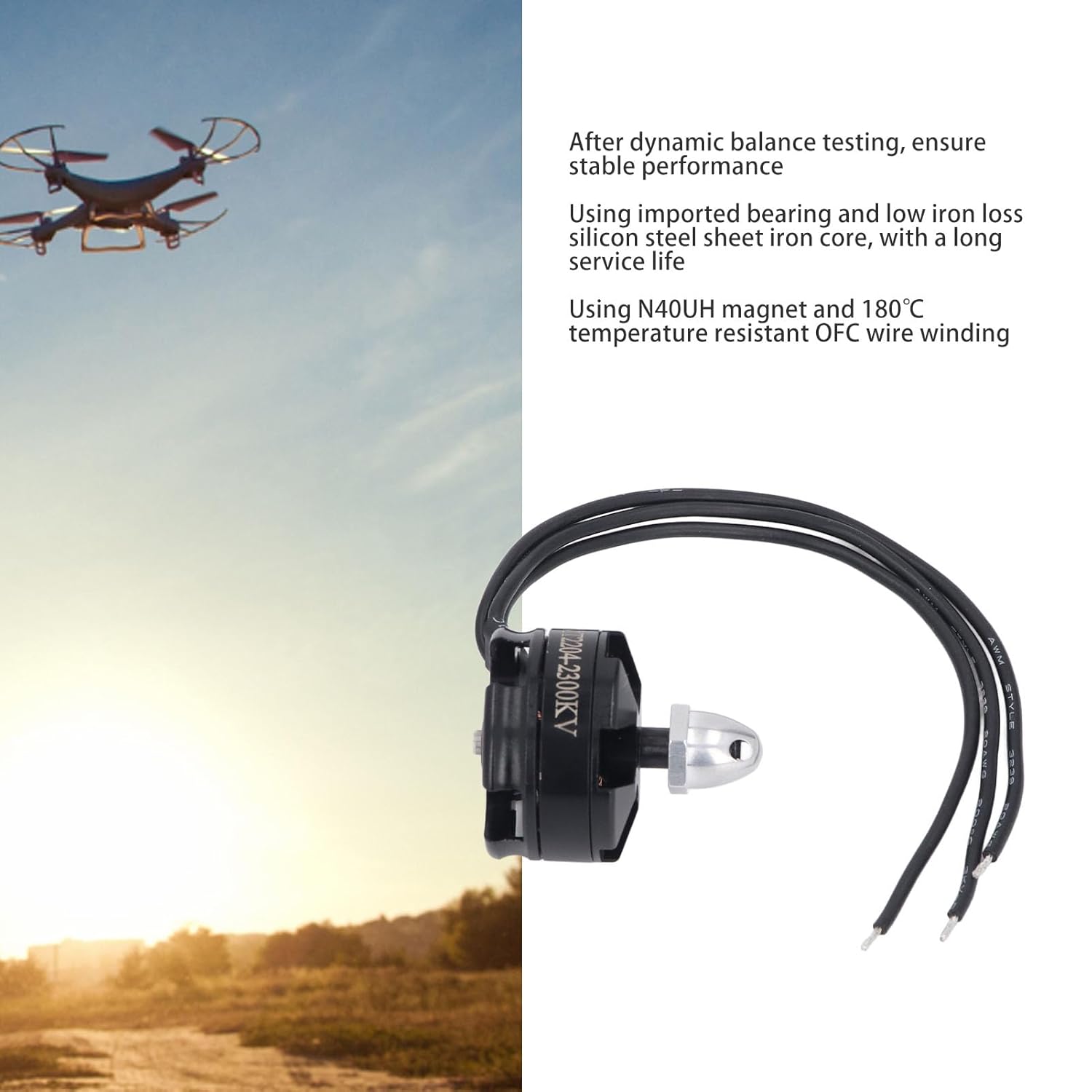 [Prestazioni potenti] Questo motore brushless mt2204 da 2300 kV offre prestazioni eccezionali con una spinta massima di 420 g e una corrente massima di 12 A. Progettato per un'elevata efficienza, presenta una resistenza da 0,112 ohm e una corrente a vuoto di 0,6 A per garantire prestazioni ottimali per il tuo drone RC. L'albero motore in lega di acciaio M5x12mm offre durata e precisione, rendendolo ideale per applicazioni quadricoptere impegnative. [Stabile e affidabile] Ogni motore MT2204 è sottoposto a severi test di bilanciamento dinamico per garantire un funzionamento regolare e stabile. La riduzione delle vibrazioni significa un migliore controllo del volo e una maggiore durata del tuo drone. Abbi fiducia in un motore che offre prestazioni costanti in una varietà di condizioni, dandoti la sicurezza di volare con precisione. [Durabilità a lunga durata] Questo motore brushless è dotato di cuscinetti importati e un nucleo in lamiera di acciaio al silicio con bassa perdita di ferro. Questi materiali di alta qualità garantiscono un'usura minima e garantiscono una durata maggiore rispetto ai motori standard. Goditi tempi di volo prolungati e manutenzione ridotta con questo motore affidabile. [Resistenza alle alte temperature] Dotato di magneti N40UH e avvolgimenti in filo Ofc resistenti alla temperatura di 180 gradi Celsius, questo motore può gestire il calore intenso senza compromessi. Che tu stia spingendo il tuo drone al limite o volando in condizioni calde, questo motore rimane fresco ed efficiente. [Per quadricotteri] Progettato appositamente per quadricotteri 180, 210 e 250, questo motore brushless offre prestazioni potenti ed efficienti. Le dimensioni compatte (circa 27,9 x 29,7 mm) e il design leggero lo rendono una scelta eccellente per gli appassionati di droni RC che cercano una combinazione di potenza e agilità.