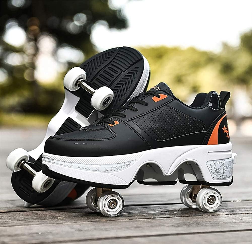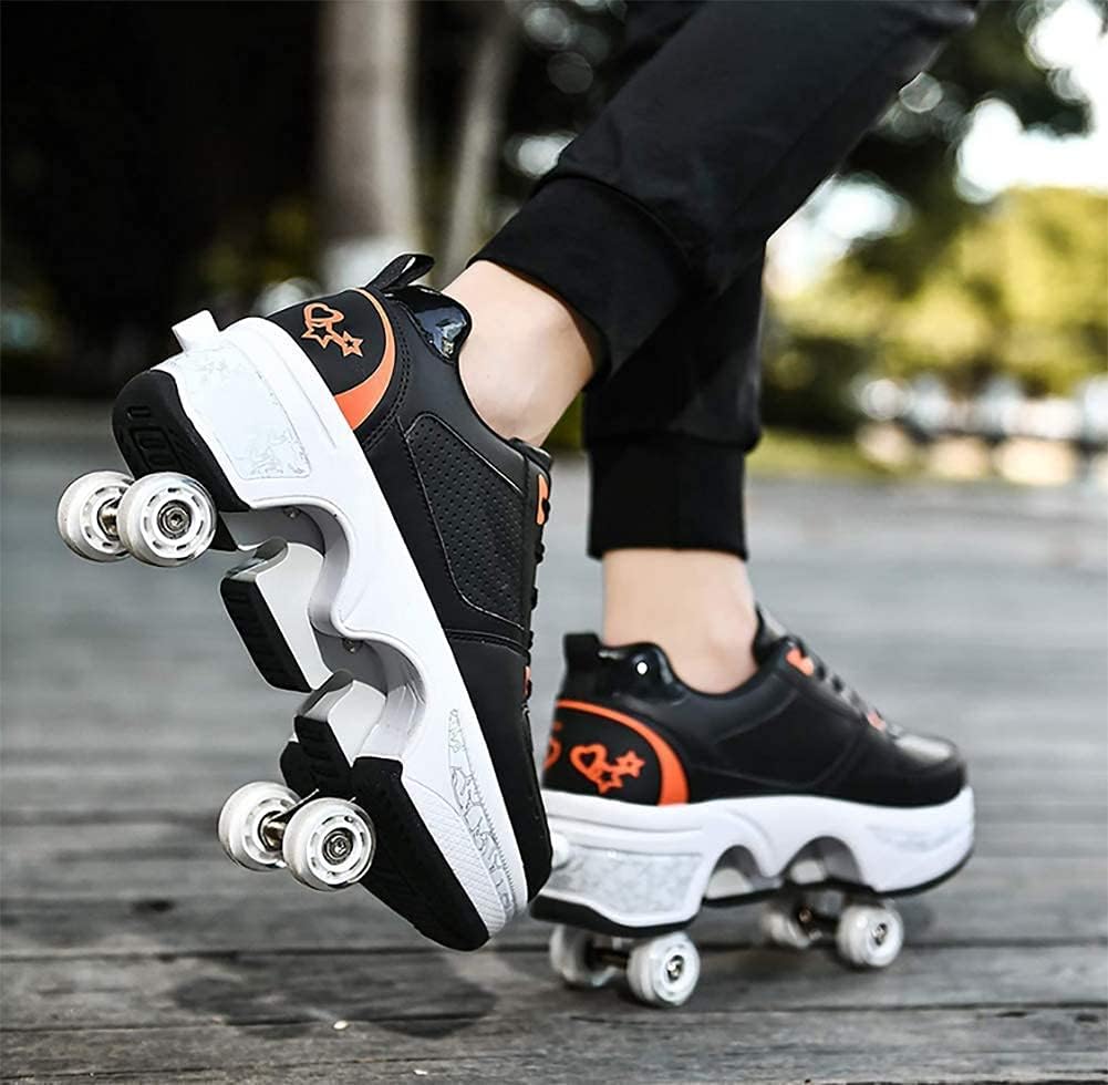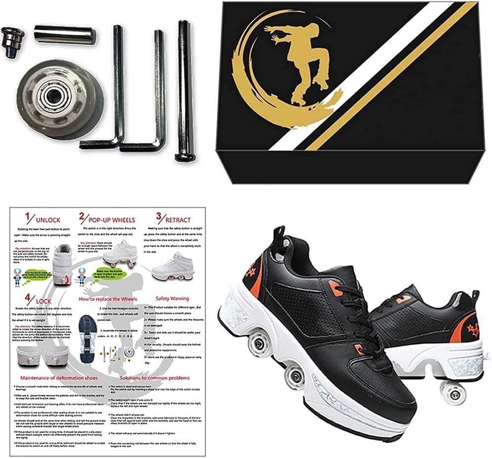 Nuovi regali: i pattini a rotelle regolabili multifunzionali sono adatti ad amici di tutte le età. Può essere usato come regalo di compleanno per bambini e amici. Si consiglia di scegliere una taglia più grande dei normali pattini a rotelle quando si sceglie la taglia, poiché è migliore dei normali pattini a rotelle che sono 0,5 metri più piccoli. Facile da trasportare: dimensioni ridotte, peso ridotto, facile da trasportare, può essere installato gratuitamente su scarpe basse, eliminando potenza e assemblaggio. Ha un buon equilibrio, facile da controllare la spada del corpo ed è sicura da usare. Scarpe sportive multifunzionali: ha anche molte funzioni come camminare, pattinare, fare sport, ecc. I pattini a rotelle sono realizzati in microfibra, la suola è in gomma e le ruote sono in PU. Design invisibile: il pulsante invisibile dal design unico impedisce l'apertura accidentale. C'è un pulsante sul retro della scarpa. Premere il pulsante per aprire la ruota. Tieni premuto il pulsante, premi la ruota nel terreno e poi rilasciala. Pattini a rotelle 2 in 1: diversi dai normali pattini a rotelle sul mercato. Può essere utilizzato non solo per il pattinaggio in linea, ma anche per le normali scarpe sportive e per le scarpe da trekking.