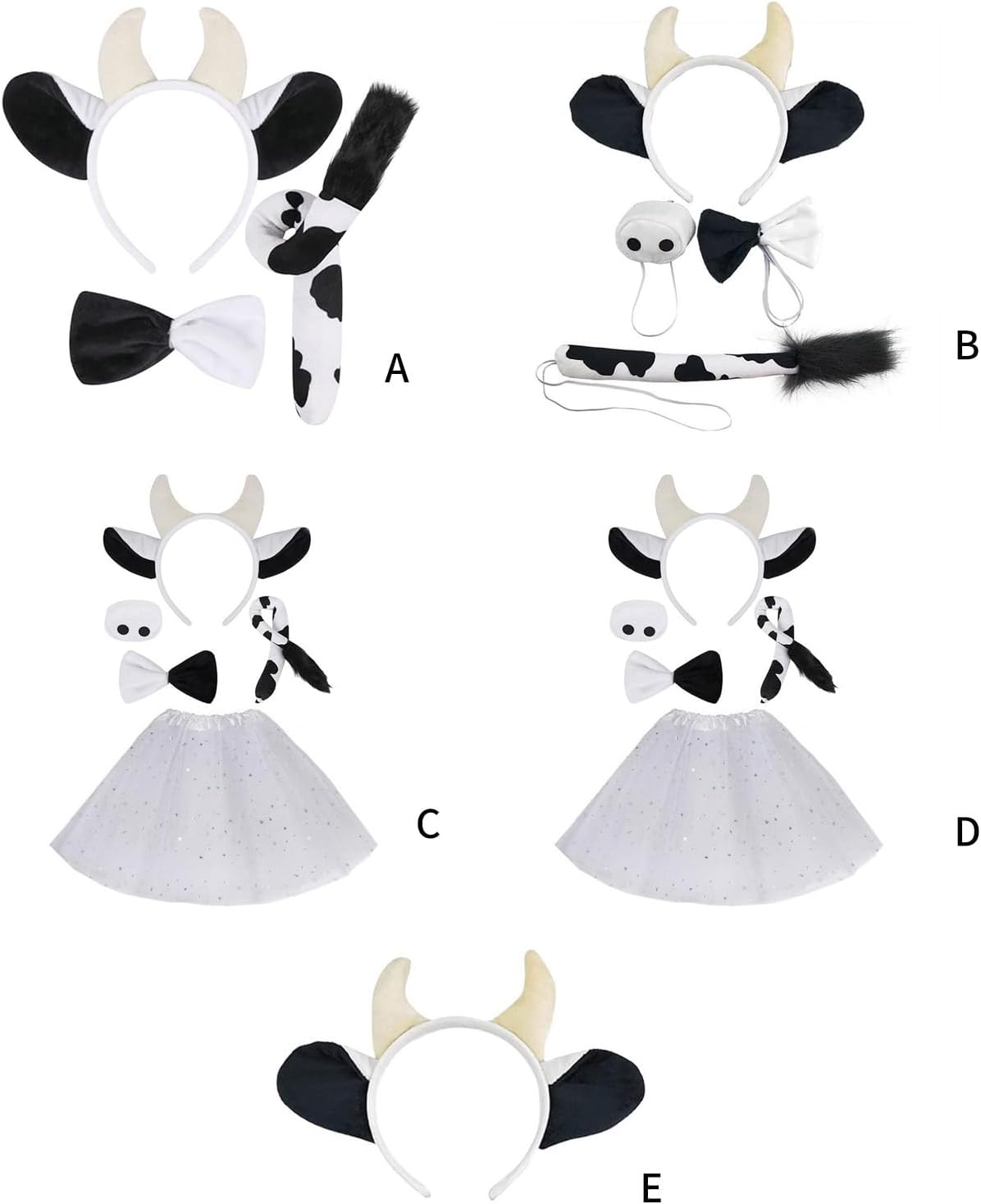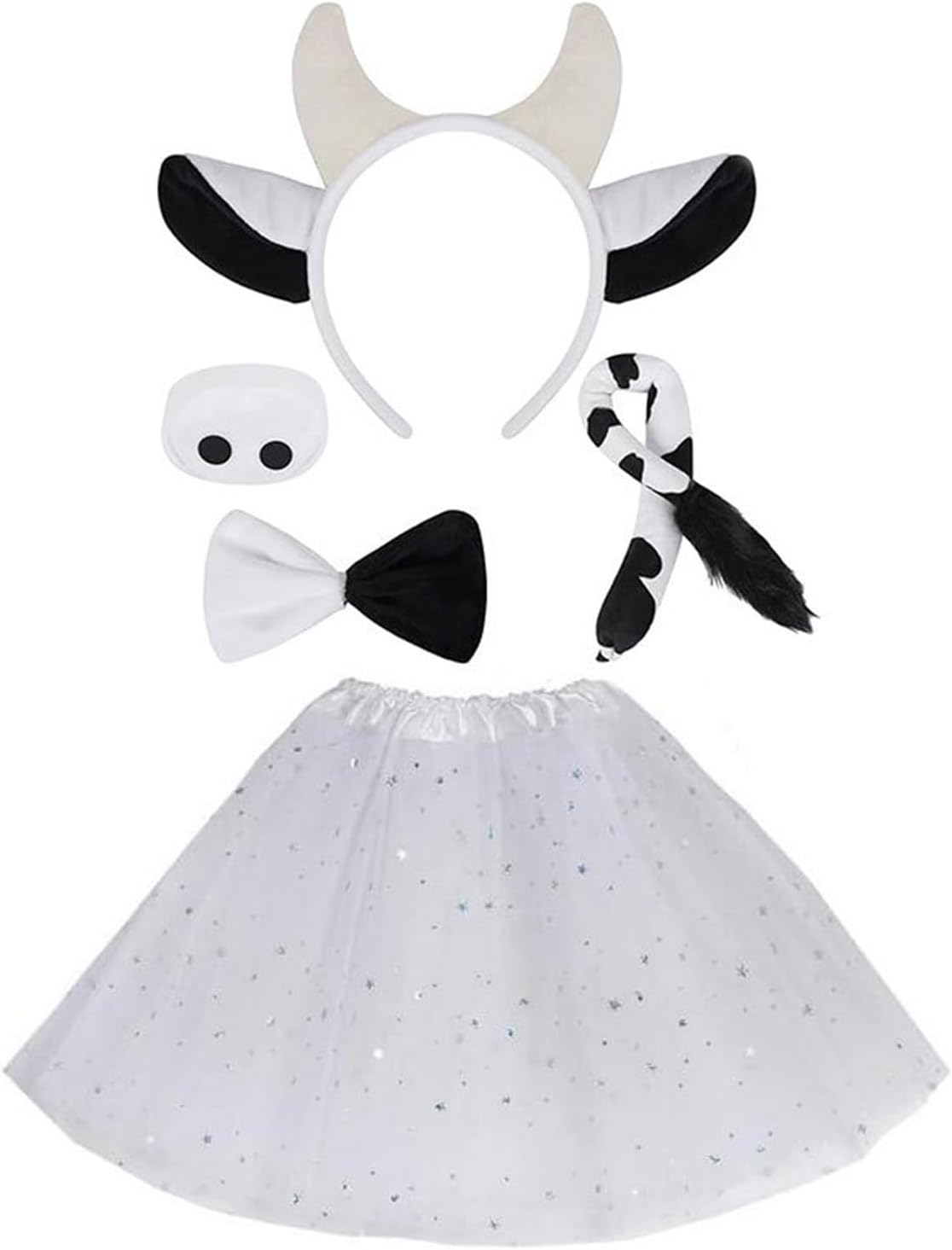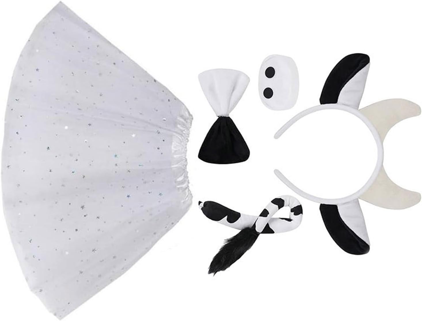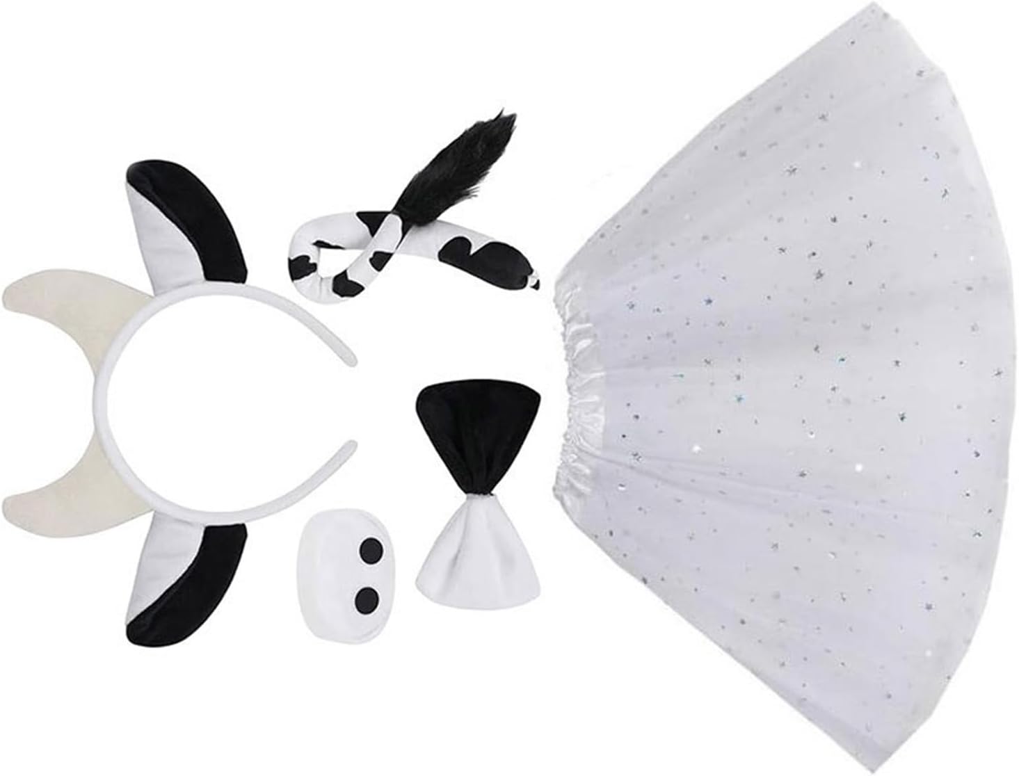 Mucca Gioco di Ruolo Outfit Accessori Halloween Costume Animale Per Ragazzo Ragazza Bambini Adulto Halloween Compleanno Cosplay Party Caratteristiche: Trasformati in una bella mucca con il nostro set di costumi da gioco di ruolo animali, con disegni a tema mucca che aggiungono divertimento a qualsiasi occasione festival. Realizzato in tessuto morbido e confortevole, questo set di fascia e costume con corna di mucca vanta un'eccellente elasticità, orecchie e coda realistiche e vestibilità sicura che impedisce lo scivolamento. Adatto sia per bambini che per adulti, in particolare appassionati di feste a tema animali, amanti del cosplay e artisti. Ampiamente usato per feste di compleanno, Halloween, feste di ruolo, spettacoli teatrali e forniture fotografiche stravaganti. Questo accessorio per costume da animale di Halloween è un'aggiunta essenziale alla tua collezione di oggetti di scena per giochi di ruolo. Specifiche tecniche: Colore: Bianco Nero Componente: poliestere. Dimensioni della fascia: circa 25 x 12 cm. Dimensioni papillon: ca. 11 cm. Dimensioni del naso: circa 7,50 cm. Dimensioni della coda: ca. 41 cm. Peso: circa 40-100 g. La confezione include: Opzione pacchetto Pacchetto 1: 1 fascia per capelli con corna di mucca. Confezione 2: 1 fascia per capelli con corna di mucca, 1 papillon, 1 coda Confezione 3: 1 fascia per capelli con corna di mucca, 1 naso, 1 papillon, 1 coda Confezione 4: 1 fascia per capelli con corna di mucca, 1 naso, 1 papillon, 1 coda, 1 gonna. Nota: Si prega di considerare un margine di errore di 0-1 cm a causa della misurazione manuale. Assicurati di non avere un problema prima di fare un'offerta. 2. L'immagine potrebbe non rispecchiare il colore reale a causa delle diverse impostazioni dei monitor