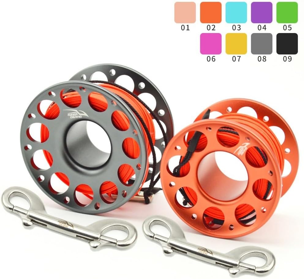 Compatto e portatile: mulinello leggero in alluminio aeronautico con una lunghezza di 15 m o 30 m, si adatta facilmente alla borsa da immersione senza aggiungere ingombro, perfetto per snorkeling e immersioni subacquee avventure in vari ambienti sottomarini. Design facile da usare: l'impugnatura ergonomica riduce al minimo l'affaticamento della mano e i tagli durante l'uso, con una rotazione liscia in acciaio inossidabile a 360 gradi per prevenire i grovigli della linea e migliorare il comfort durante le immersioni prolungate. Per materiali di lunga durata: realizzato in lega di alluminio aeronautico, corda in polifibra ad alta resistenza e doppio gancio in acciaio inossidabile 316, costruito per resistere alle dure condizioni di acqua salata e fornire prestazioni di lunga durata. Accessorio versatile: include un gancio a doppia estremità in acciaio inossidabile 316 che si fissa saldamente all'attrezzatura subacquea, offrendo un'utilità affidabile per attività come contrassegnare posizioni o attrezzature di movimentazione sott'acqua. Funzionamento fluido: per la linea rinforzata ultrasottile e la rotazione completa assicurano un'esperienza, consentendo di concentrarsi sull'esplorazione con un mulinello disponibile in 9 colori per soddisfare le preferenze personali.