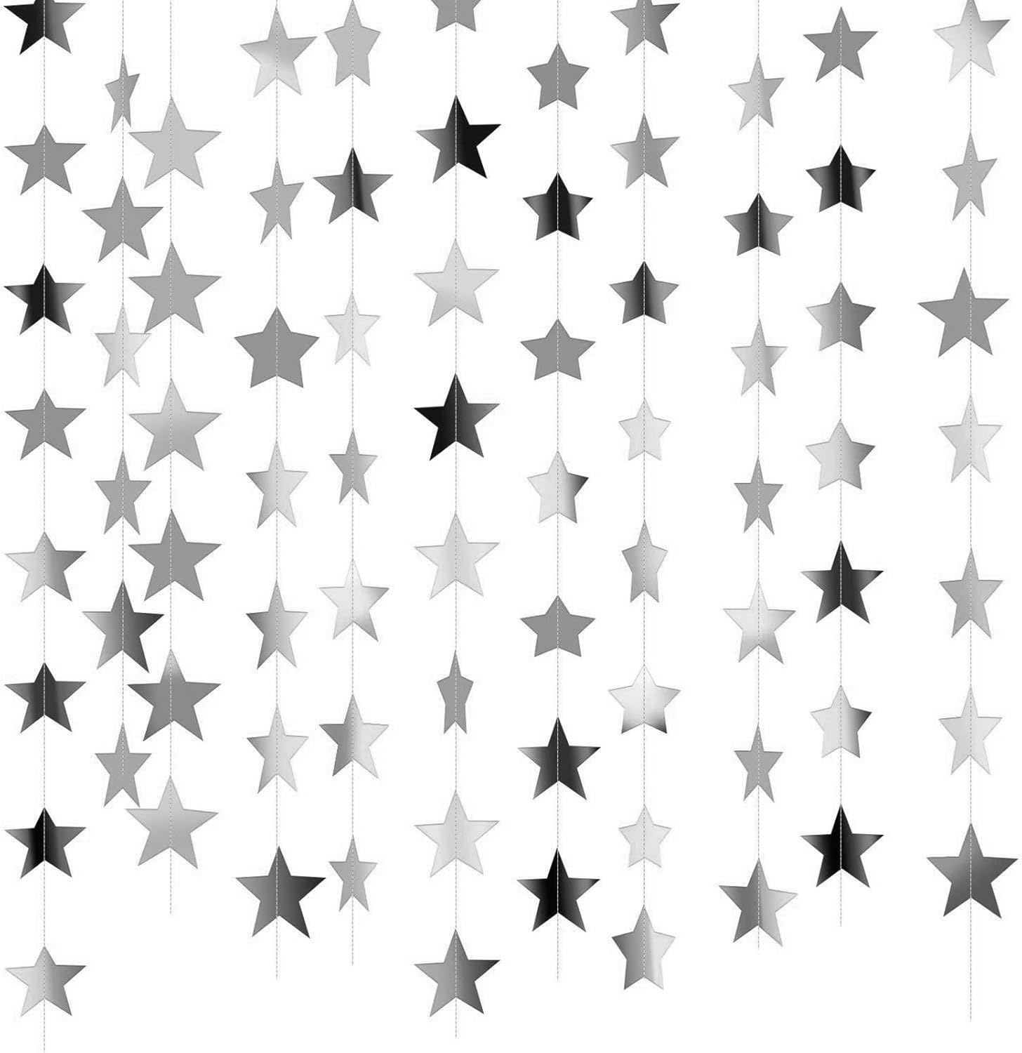 Ghirlande a stella multicolore creano decorazioni accattivanti per feste per celebrazioni. Realizzati in carta, questi ornamenti da appendere presentano disegni preinfilati per una facile installazione su parete, soffitti. Trasforma feste di compleanno, ricevimenti di nozze, cerimonie di laurea ed eventi stagionali con questi accessori decorativi. Per organizzatori di eventi, appassionati di vacanze e genitori in cerca di forniture per feste per riunioni di famiglia o funzioni scolastiche. Queste stelle sono caratterizzate da colori resistenti allo sbiadimento per composizioni ornamentali sostenibili.