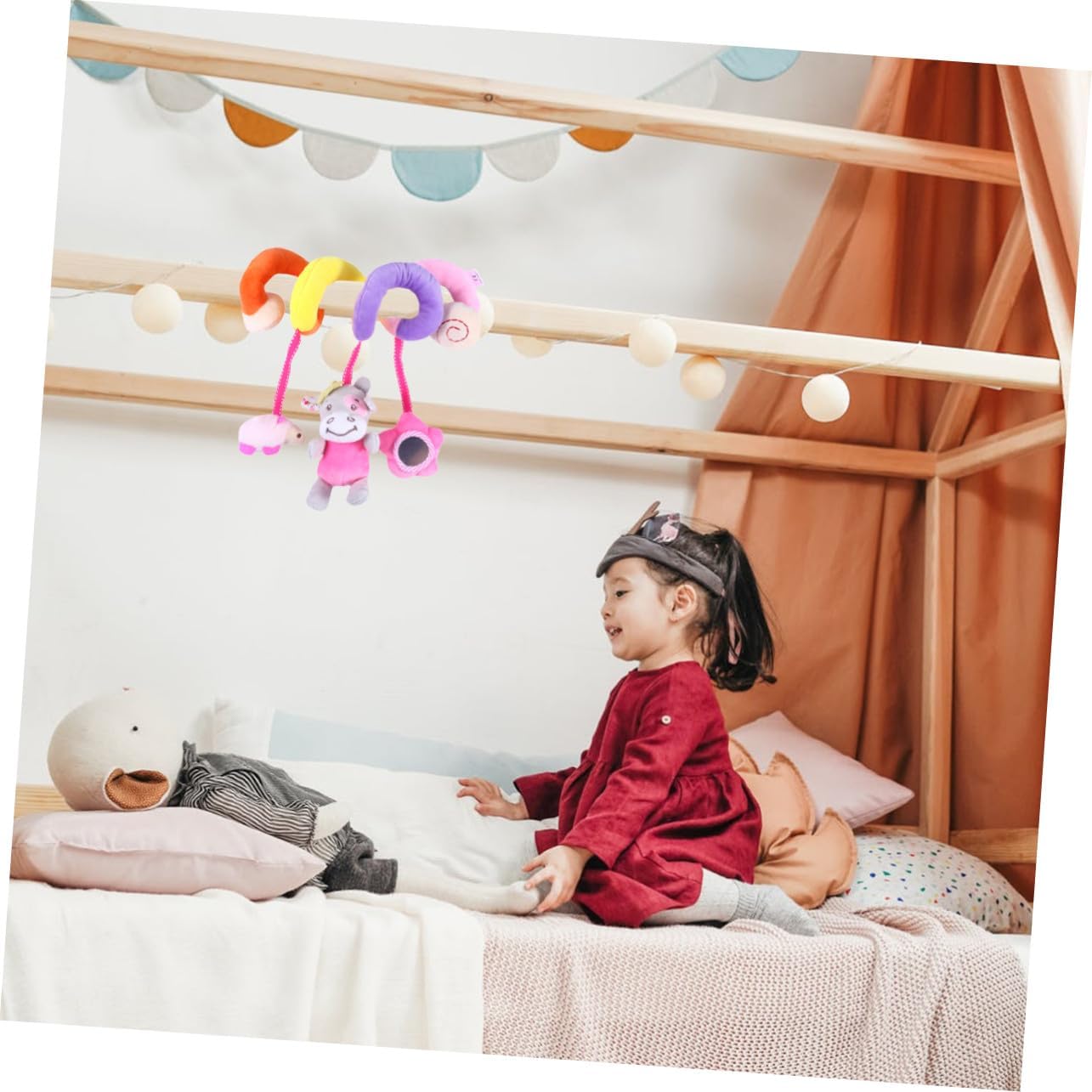 Lettino per bambini - per sviluppare lo spirito di scoperta del bambino, giostrina per lettino Giocattoli per bambini - possono essere avvolti attorno alle sbarre del lettino, al passeggino o alla maniglia del seggiolino, giocattoli per bambini e sonagli Giocattoli a spirale per il lettino - questo giocattolo a spirale ha un corpo morbido e morbido, piacevole al tatto ed è adatto come giocattolo per la dentizione dei bambini Giocattolo a sonagli sospeso - leggero e sicuro per i bambini, sonagli sospesi per bambini Sonaglio per passeggino per HANG - Il design colorato e creativo assicura il tuo divertente sonaglio