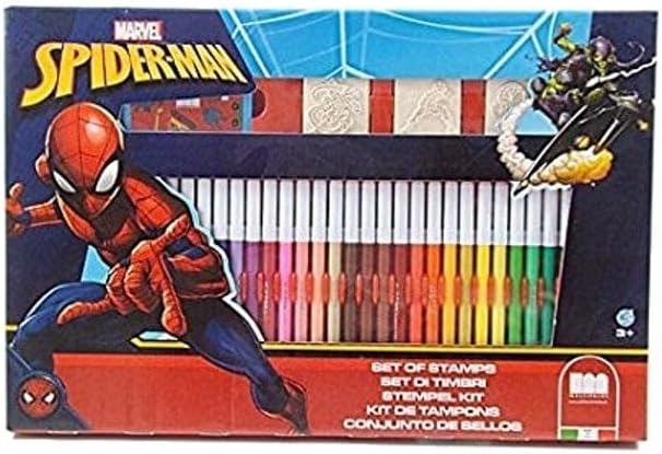 Confezione contenente: 3 timbri in legno,36 pennarelli , 1 inchiostro blu lavabile, 1 album da colorare