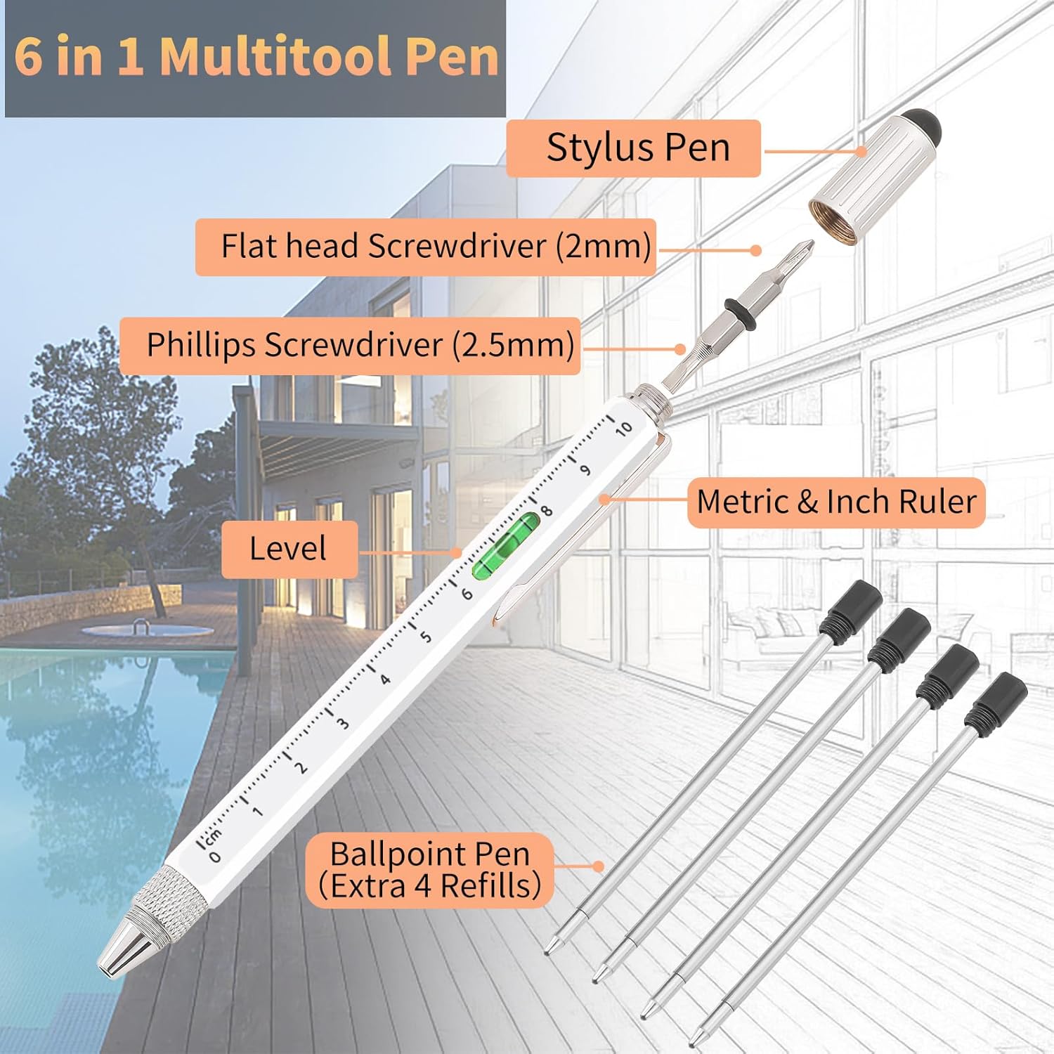 Penna per attrezzi fresca aggiornata 2022: costruita in metallo di alluminio resistente, costruita per essere durevole e durare per infiniti progetti duri. Può essere utilizzato come regalo personalizzato per la festa del papà da figlia figlio moglie. Incredibili accessori multitools adatti come regalo per ingegneri edili, falegnami, tuttofare ecc. La penna multiuso per utensili da costruzione è un regalo divertente per uomini, papà, mariti, fidanzati, nonni, adolescenti per compleanno, festa del papà, anniversario, ecc. Penna multiuso 6 in 1: gadget fantastici per uomo ha 6 funzioni multifunzione: stilo schermo, livello di bolla, righelli centimetri/pollici, cacciavite a testa piatta e Phillips e una penna a sfera. Le penne da costruzione sono dotate di 4 ricariche extra che scrivono in modo molto fluido con un flusso di inchiostro costante, offrendo una piacevole esperienza di scrittura. Le penne multifunzione possono essere regalate come regali per falegnami, ingegneri, falegnami, operai edili, colleghi, uomini non sapranno di aver bisogno di una penna da lavoro per utensili da costruzione fresca finché non avranno! Strumento tascabile EDC con livella a bolla: la penna multiuso non è solo un righello con 2 scale (mm/in), ma anche una penna fredda multifunzionale con un livello incorporato, non c'è bisogno di preoccuparsi della duplicazione del lavoro a causa di appendere o disegni irregolari. La penna resistente tutto in uno deve avere gadget per gli uomini, regali unici per calza di compleanno per uomini donne papà mamma, anche se è il tipo "non prendermi nulla", se hai questo tipo di persona nella tua vita, compragli uno, adorerà questa roba fantastica. Cool Tech Gadget con Touch Pens: la penna stilo viene fornita con una squisita punta in gomma morbida che consente un movimento preciso e un disegno preciso sullo schermo. Svitare la punta dello stilo e appare un cacciavite a doppia estremità: phillips e flathead, è bene per te rimuovere le viti dell'attrezzatura all'interno o all'esterno, Quindi, ovunque tu sia, avrai sempre un cacciavite multi. Gli amanti dei gadget degli strumenti potranno godere di una mini penna per strumenti di costruzione tecnologica ovunque e in qualsiasi Gadget pen è un elettricista regali per ingegnere. Regali per ingegneri di servizio senza preoccupazioni per uomo: le penne tascabili sono regali pratici di buona qualità in modo da poter acquistare con fiducia. Forniamo un servizio amichevole del produttore per regali di penne per uomini e donne, quindi facci sapere se hai problemi con le tue penne ingegnere. Le penne fredde per gli uomini possono essere utilizzate come regali di Natale per uomini e donne, calze imbottite per uomini, strumenti regalo per la festa del papà, regali personalizzati fantastici gadget per gli uomini, regali novità, regali di San Valentino per gli uomini, regali di compleanno per lui.