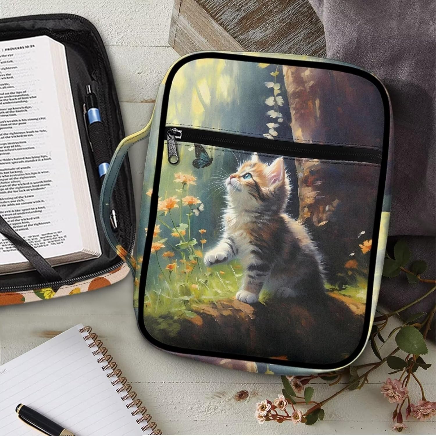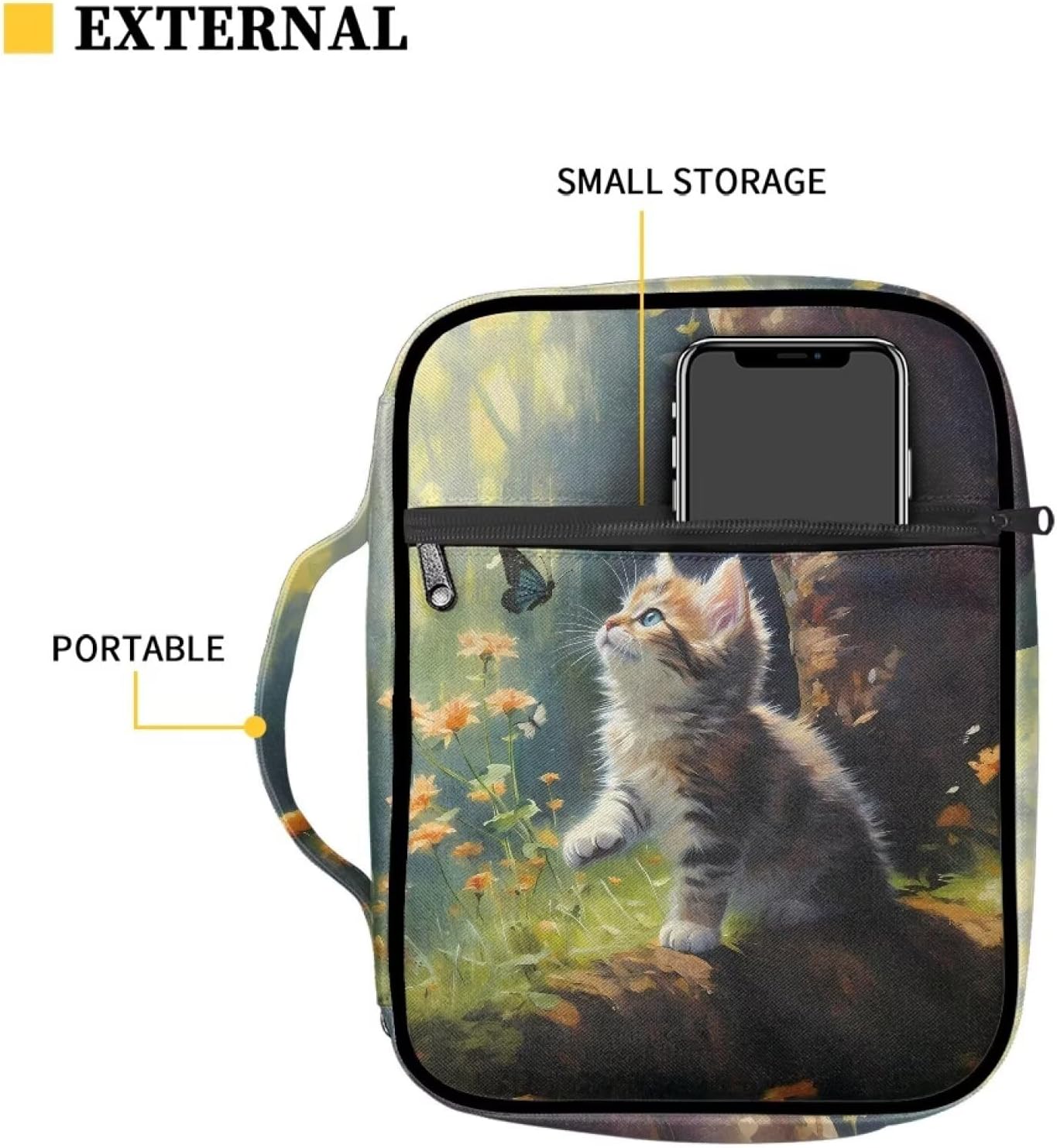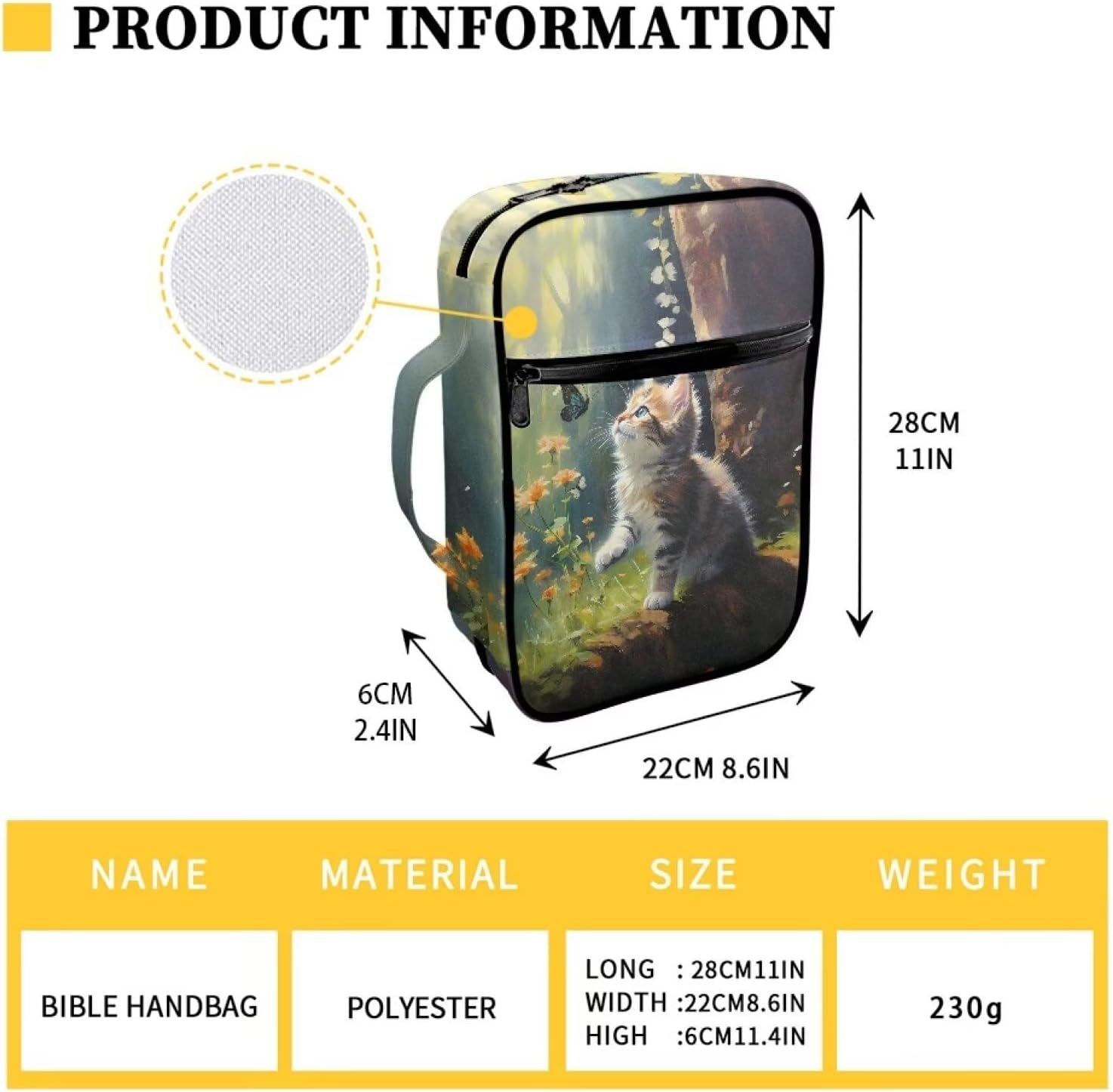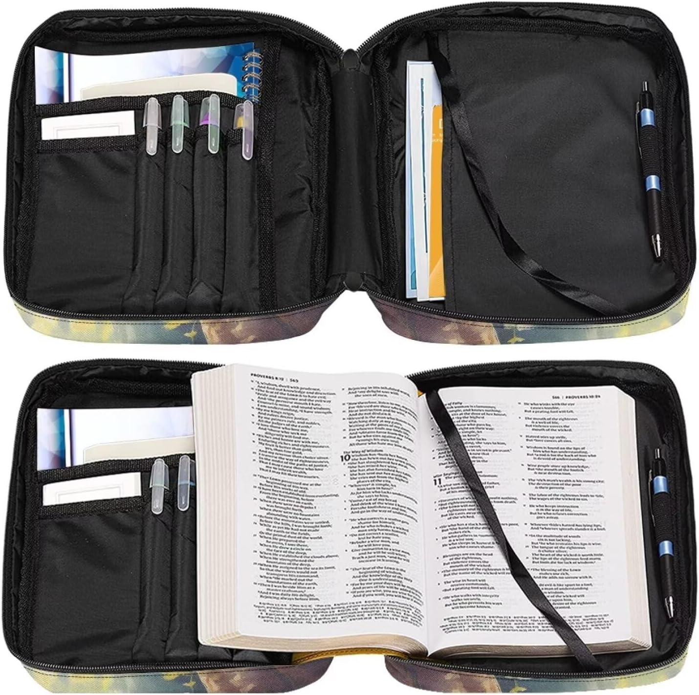 Dimensioni: 22 x 6 x 28 cm. Adatto per posizionare bibbie di dimensioni standard, libri, quaderni, ecc. Si prega di misurare le dimensioni della Bibbia prima di ordinare per assicurarsi che si adatti a voi. Materiale: la borsa Bibbia è realizzata in poliestere di alta qualità con cerniera in metallo. Durevole e resistente all'usura, leggero e morbido. Proteggi la tua bibbia o libri, quaderni dai graffi. Grande capacità: questa borsa per bibbia viene fornita con una tasca frontale con cerniera per riporre facilmente il telefono cellulare e altri oggetti. L'interno ha 1 tasca verticale, 1 scomparto per segnalibri, 4 bradipi per penne, 2 tasche laterali, 1 cintura per segnalibri. Design con manico portatile: questa borsa per bibbia è dotata di un manico robusto, che rende la borsa della Bibbia facile da impugnare e camminare. Si può facilmente portare con te in chiesa, a scuola, in biblioteca, in viaggio e in altre occasioni. Regalo perfetto: i nostri sacchetti biblici sono disponibili in una varietà di stampe. Perfetto per Natale, Halloween, giorno del Ringraziamento, regali religiosi per amici e familiari.