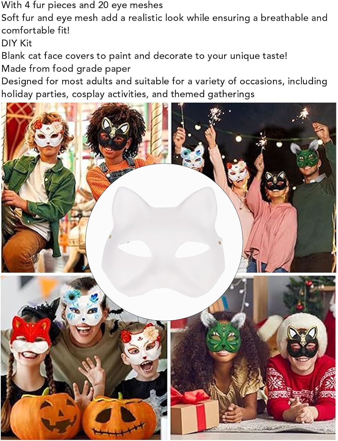 Specifiche: Tipo di articolo: Mascherina per il viso di gatto vuota Materiale: Carta Peso: circa 267,00 g / 9,42 oz Contenuto della confezione: 10 mascherine per il viso di gatto vuote 4 fogli di pelliccia 20 fogli di rete Modalità d'uso: Utilizzare direttamente
