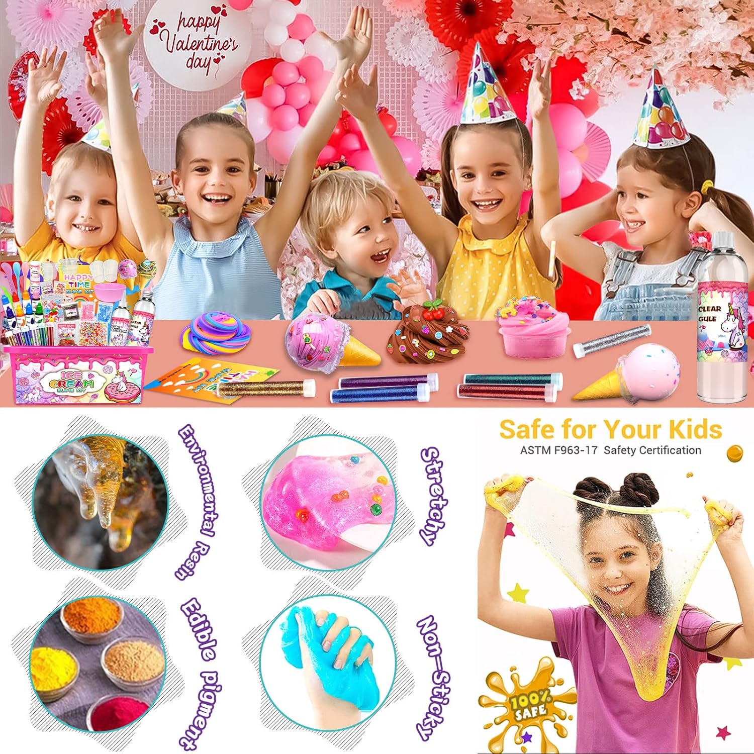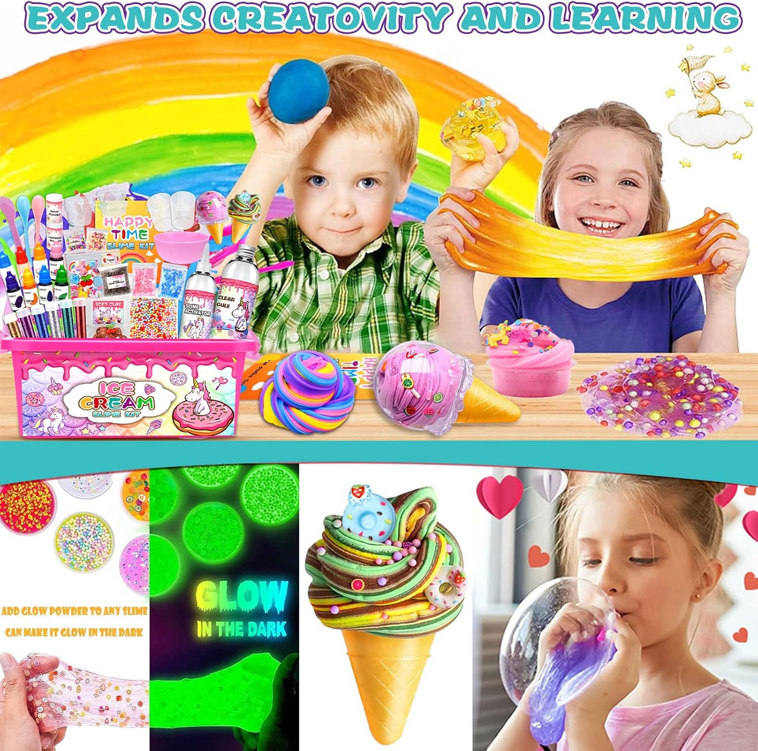🌈Kit slime da 55 pezzi fai da te per creare il migliore slime per ragazze, ragazzi, tutto ciò di cui hai bisogno in una scatola completa con colla, perline di unicorno, inchiostri,attrezzo, contenitori e molto altro ancora! Inoltre, un attivatore di slime sicuro al 100% e istruzioni complete (lingua italiana non garantita). ✨Molto sicuro- Realizzato con materiali ecologici, è facile da pulire e ha un buon odore, non contiene sostanze chimiche irritanti e non è tossico. 🦄Facile da realizzare con dettagliate istruzioni illustrate - Segui le ricette passo passo e crea il tuo Slime di gelato preferite, Schiaccia il tuo Slime nel simpatico contenitore a forma di cono di gelato! 🍦Colori intensi e accessori portano abbastanza divertimento e creatività per portare ai bambini ore di gioia, questo set slime rilassante con accessori tiene le bambine impegnate per ore e lontano dal televisore 🎀Un Mini Kit di Slime perfetto per ragazze dai 3 ai 12 anni ed è un regalo ideale per i compleanni!