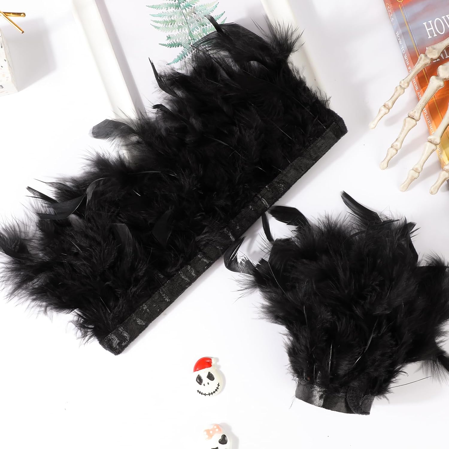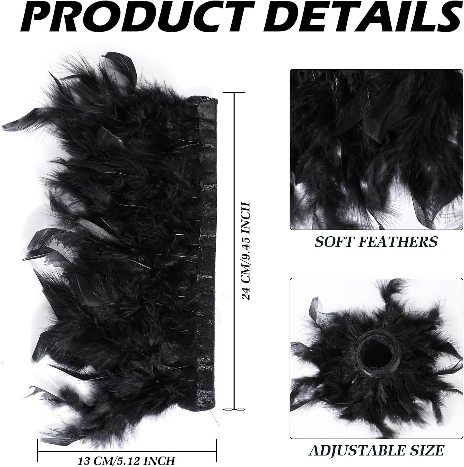 Informazioni sui Polsini da Polso con Piume per Donne MWOOT Specifiche: Materiale: piume di tacchino naturali, nastri di raso Colore: nero Stili: bracciali con piume gotiche Caratteristiche: Questo prodotto è un bracciale con piume in stile retrò. Il delicato design a piume creerà un'atmosfera vintage per l'intero outfit. Ti farà apparire elegante e affascinante. Taglia unica adatta alla maggior parte delle donne e ragazze - Indossare il bracciale con piume è molto semplice. Basta agganciare il bracciale al polso o al braccio e si adatterà perfettamente alla dimensione del tuo polso o braccio. Si adatta alla maggior parte delle persone, donne e ragazze, ottimo come regalo per amici e familiari. Perfetto per molte occasioni, come feste di Halloween, mascherate, cosplay, feste degli anni '20, feste a tema cocktail, feste in costume di Carnevale, matrimoni, feste del tè, ecc., che possono aggiungere il tuo fascino personale.