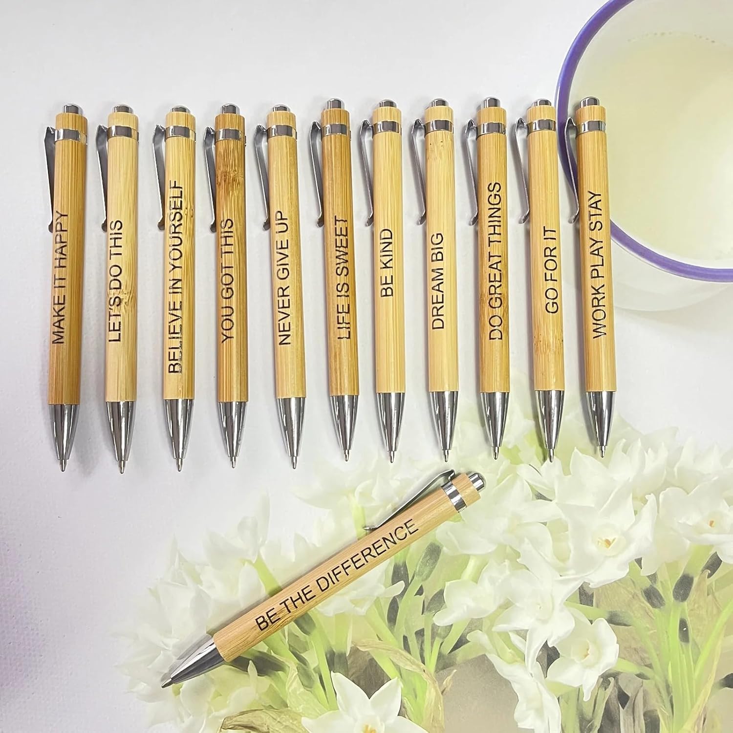 1. Penne personalizzate: questo set di penne a sfera in bambù è un regalo pratico, perfetto per bambini, studenti, insegnanti, amici e molto altro ancora, perfetto come regalo di compleanno o di vacanza per clienti aziendali, colleghi, persone care o altri oggetti per il tuo studio a casa o la scrivania aggiunge un tocco di raffinatezza e può essere utilizzata anche in scuole, uffici, feste, conferenze, fiere, eventi aziendali, promozioni e altro ancora. 2. Materiale: bambù naturale, lucido e liscio, protegge l'ambiente. Poiché il bambù è un materiale naturale, la finitura, il motivo e le venature possono variare leggermente. Durante il processo di produzione possono sorgere tracce di fumo. 3. Penne a sfera personalizzate con incisione: nome, data e testo, si suggerisce che la frase non deve essere più lunga di 35 caratteri, altrimenti sarà più piccola. 4. Design pratico: ogni penna divertente è progettata con una robusta clip in metallo, che consente di metterlo in tasca o agganciarlo al notebook, scrivendo 1 mm, circa 14 cm, penna a sfera con inchiostro nero con scrittura liscia. 5. Regalo personalizzato: penne a sfera personalizzate con nome, queste penne in bambù sono perfette sia per uso personale che possono anche essere regalate a familiari, colleghi o utilizzate come piccoli regali per eventi di classe. Perfette per matrimoni, Natale e festa dell'insegnante, penna a sfera personalizzata in legno di bambù, un ottimo regalo per ogni occasione.