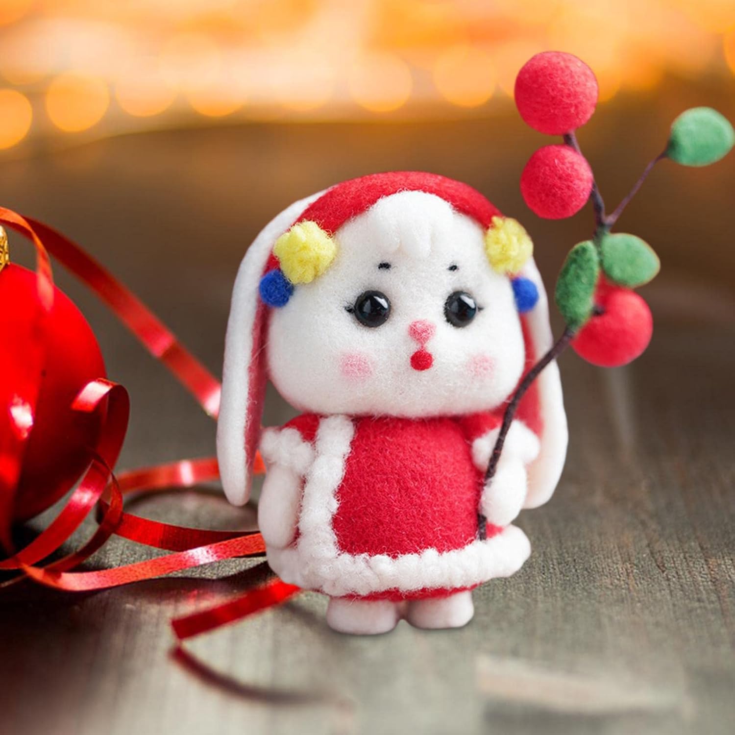 Materiale: feltro di alta qualità, morbido e delicato al tatto e durevole da usare. Facile da usare: completo di istruzioni facili da seguire, perfetto per i principianti. Bambola coniglio: bella forma di bambola di coniglio, perfetta per l'anno del coniglio 2023, un ornamento perfetto per la decorazione di Capodanno. Regalo: un regalo perfetto per bambini, familiari e amici. Kit per infeltrimento ad ago: 1 set di accessori per infeltrimento ad ago, tra cui 3 aghi per infeltrimento, 1 tappetino in schiuma, diversi feltri, 1 paio di occhi per bambola, 1 manuale di fabbricazione, 1 set di accessori portachiavi.