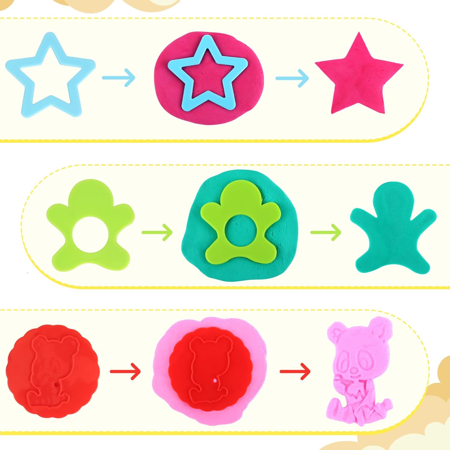 Il set include: gli strumenti per plastilina contengono 24 strumenti diversi, strumenti vari e dai colori vivaci consentono ai bambini di completare il taglio, la modellatura, la modellatura e il rotolamento, il kit di accessori per plastilina sviluppa le abilità pratiche e la concentrazione del fai da te dei bambini. 【Materiali di qualità】: gli accessori in argilla da modellare sono realizzati in plastica di alta qualità, atossica e inodore, leggera, robusta e durevole, forma compatta per le piccole mani dei bambini, consentendo ai bambini di realizzare infinite creazioni a casa o a scuola. 【Facile da pulire】: la pasta da gioco per bambini è facile da pulire, può essere lavata con acqua e sapone, dopo aver ricevuto il prodotto, si consiglia di pulire prima la superficie dalla polvere galleggiante, in modo che i bambini possano divertirsi di più. 【Giocattoli prescolastici】: i genitori possono guidare i propri figli a utilizzare diversi strumenti e interagire in modo divertente con loro. I bambini possono realizzare interessanti oggetti con le forme che gli interessano, che possono migliorare la loro abilità manuale oltre a stimolare la loro creatività e fantasia. 【Servizio di prima classe】: se hai domande dopo aver ricevuto il nostro kit per modellare la pasta da gioco, non esitare a contattarci via e-mail. Ti daremo una risposta soddisfacente entro 24 ore.