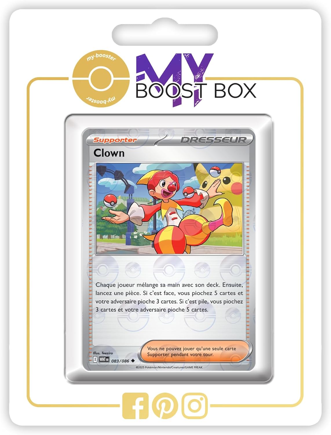 my-booster Clown (Buffon) 083/086 Allenatore Reverse Versione Poké Ball X Écarlate et Violet 10.5 Flamme Blanche - Box di 10 carte Pokémon Francese