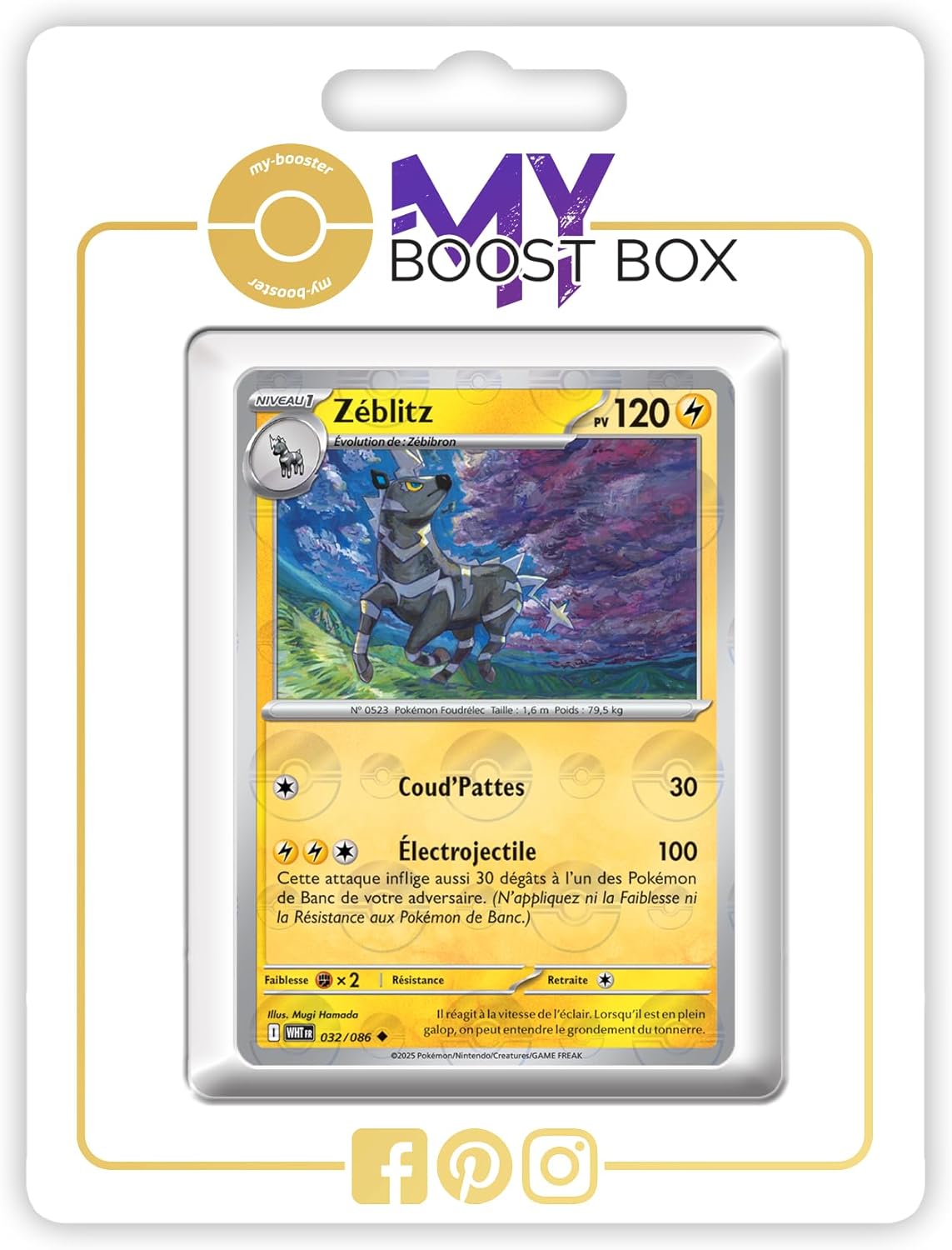my-booster Zéblitz (Zebstrika) 032/086 Reverse Versione Poké Ball X Écarlate et Violet 10.5 Flamme Blanche - Box di 10 carte Pokémon Francese