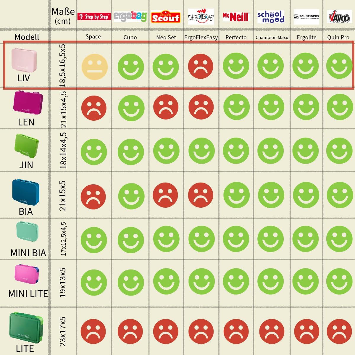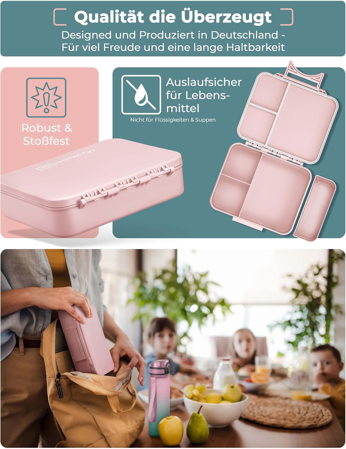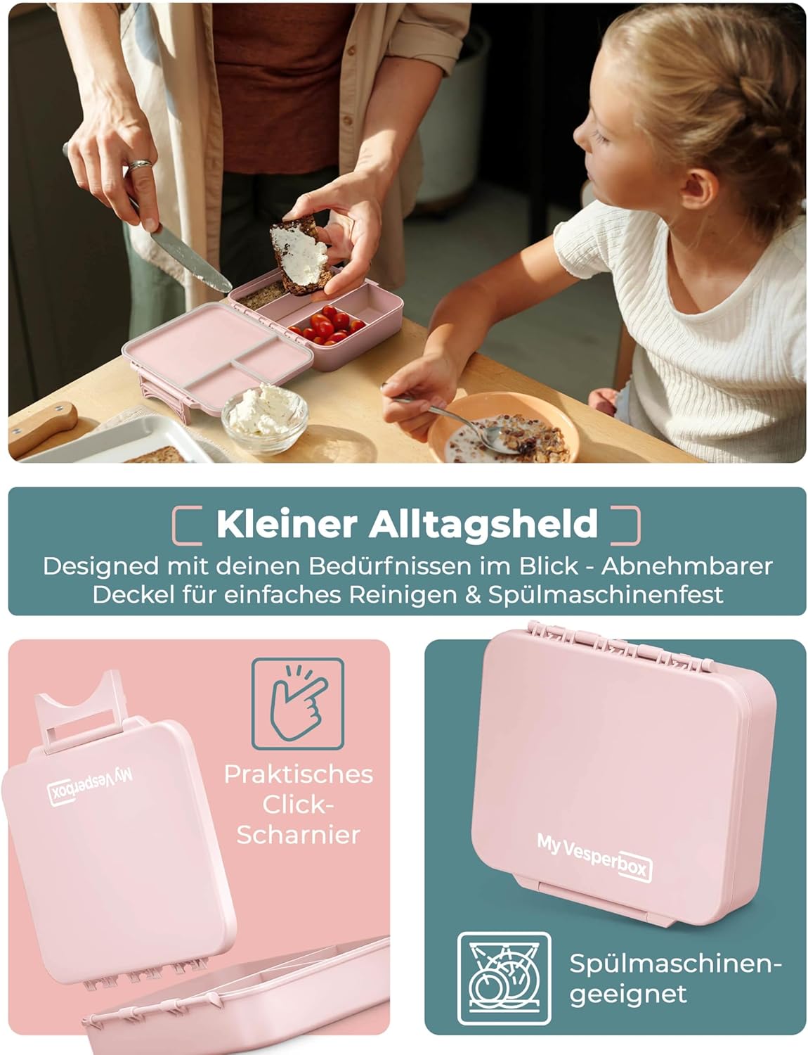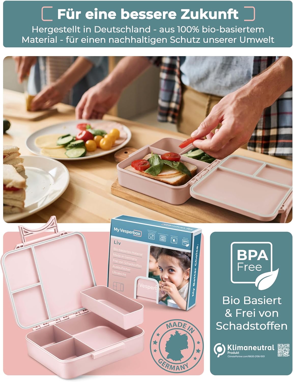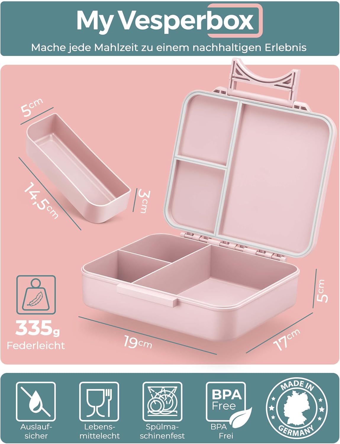 Nuovo modello – ancora più pensato: con suddivisione degli scomparti ottimizzata, design a prova di perdite e facile da usare. Testato per i seguenti studenti: Step by Step Space, Ergobag Cubo, Scout Neo, ErgoFlexEasy, Mc Neill Perfecto, School Mood Campion Maxx, Ergolite Vavoo Quin Pro, si adatta anche a molti altri ma non testati da My Vesperbox Made in Germany: prodotto con i più alti standard di qualità, garantito per durare nel tempo e sostenibile. A prova di perdite e suddiviso: grazie ai pratici scomparti i cibi rimangono freschi e separati, perfetti per frutta, verdura, snack e panini. Non mescolare, nessun disastro! A base biologica e senza BPA: ecologico e sano, senza sostanze chimiche nocive, in modo da poter conservare il cibo in tutta sicurezza.