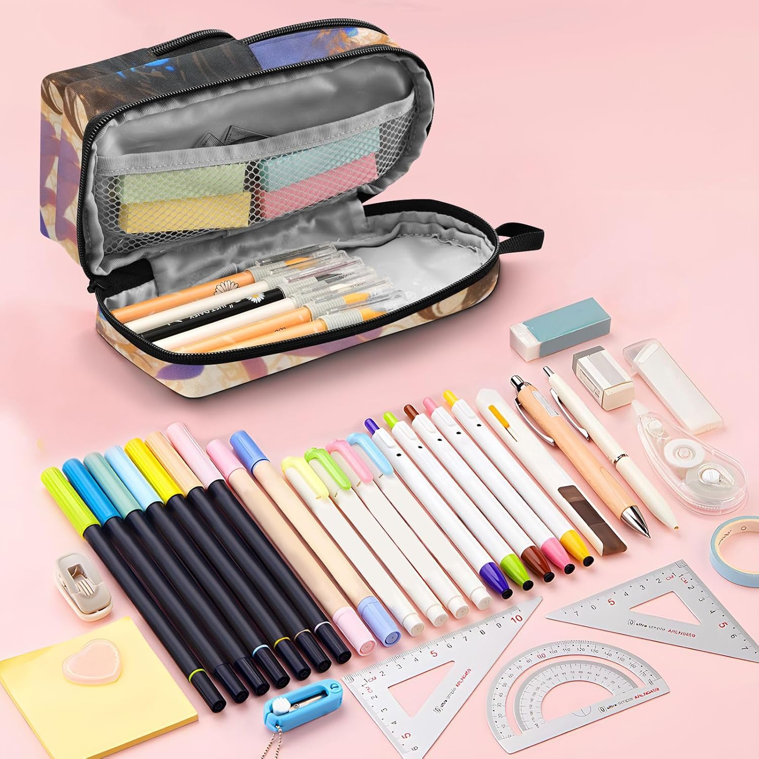 Grande capacità: le dimensioni precise di 23,4 x 9,9 x 7,9 cm e lo spazio interno da 1600 ml sono appositamente progettati per un gran numero di matite sottili. L'astuccio portapenne si adatta perfettamente alle tue esigenze di trasporto e conservazione ed è un potente aiuto per lo studio e il lavoro. Multifunzionale: questo astuccio a tre strati con cerniera grande non può contenere matite ma anche essere utilizzato per riporre piccoli articoli di cancelleria come gomme, righelli e temperamatite, ottenendo un'integrazione multifunzionale e garantendo che i tuoi strumenti di apprendimento siano tutti disponibili. Materiale: il nylon è e la stampa senza cuciture sulla superficie è squisita. Il materiale ha una buona traspirabilità, che può impedire alla cancelleria di bagnarsi, mantenere l'interno asciutto e prolungare la durata della cancelleria. Design: il design umanizzato ha una presa comoda e un aspetto semplice ed elegante. La stampa senza cuciture aggiunge un tocco artistico. Che si tratti di studenti o impiegati, può essere incantato da esso. Età consigliata: dai 3 anni in su. Non adatto ai bambini di età inferiore ai 3 anni. Se avete qualche problema con questo astuccio estetico, vi preghiamo di contattarci via e-mail.