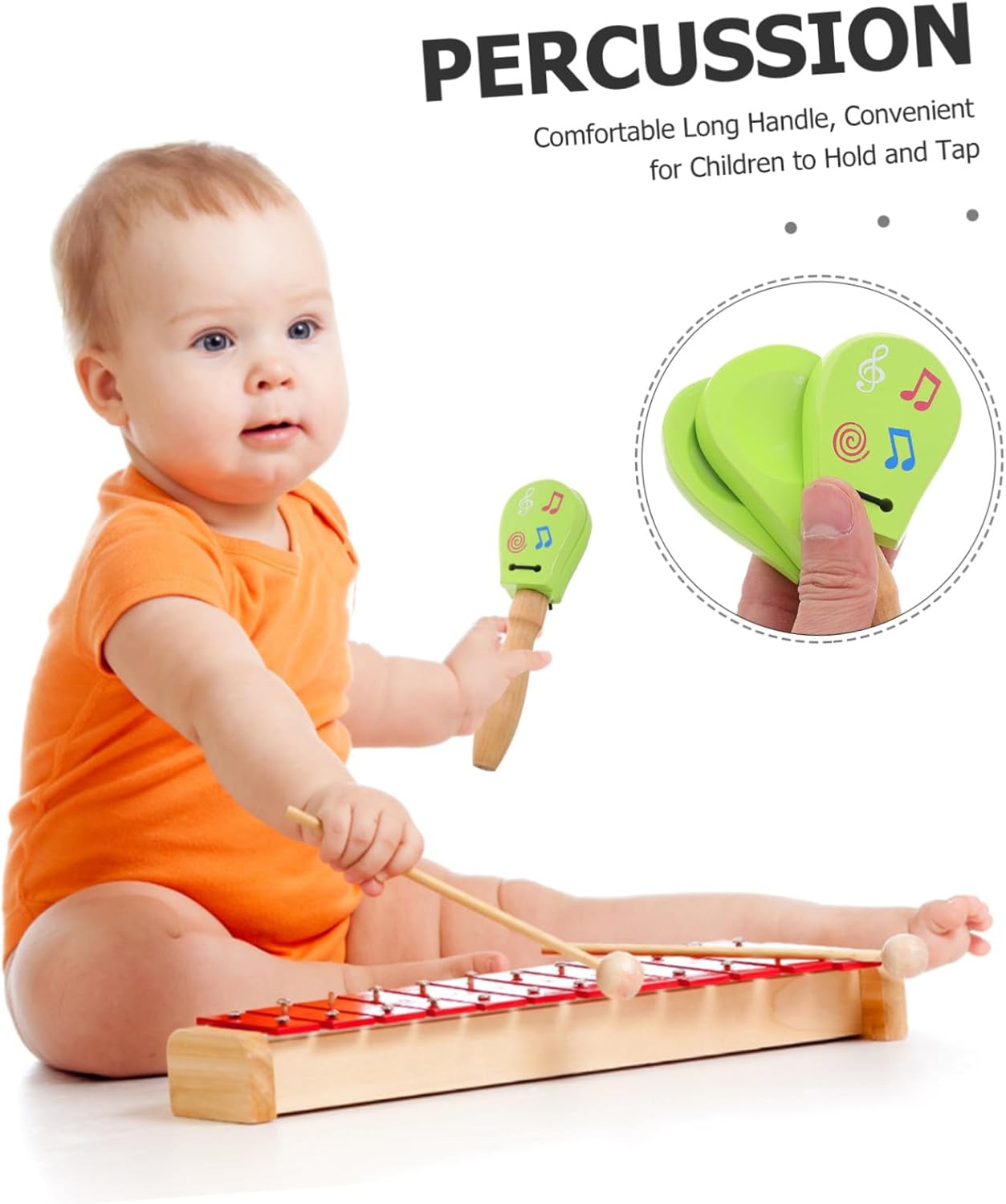 Liscia e sicura: ogni nacchera è accuratamente lucidata e verniciata, fornendo una superficie liscia e sicura per le mani dei bambini, nacchere, giocattoli di nacchere di legno Manico ergonomico: il design del manico lungo offre una presa comoda, adatto a diverse età, giocattoli di legno per battere le mani, giocattoli di nacchere per bambini Sviluppo musicale dei bambini: migliora le abilità musicali e ritmiche del tuo bambino facendo clic sulle nacchere di legno, sulle nacchere per bambini o sui giocattoli delle nacchere per bambini educazione precoce: queste nacchere di legno servono come educazione precoce e aiuta i bambini a migliorare le loro capacità di udito e coordinazione occhio-mano. -beatmaker, giocattolo per bambini Materiale affidabile: realizzate in legno robusto, queste nacchere sono progettate per durare e per un uso a lungo termine. nacchere per le dita, festa dei rumoristi