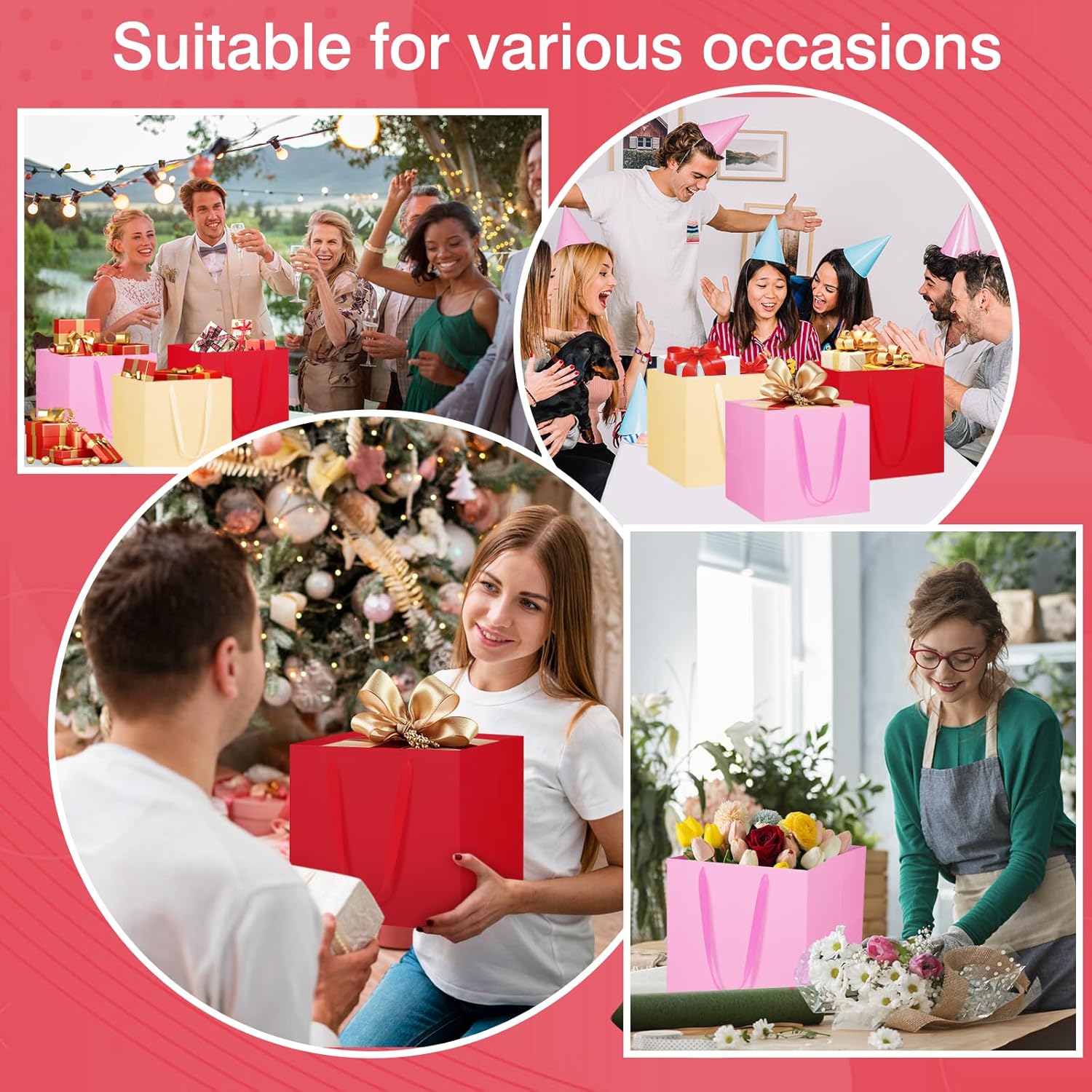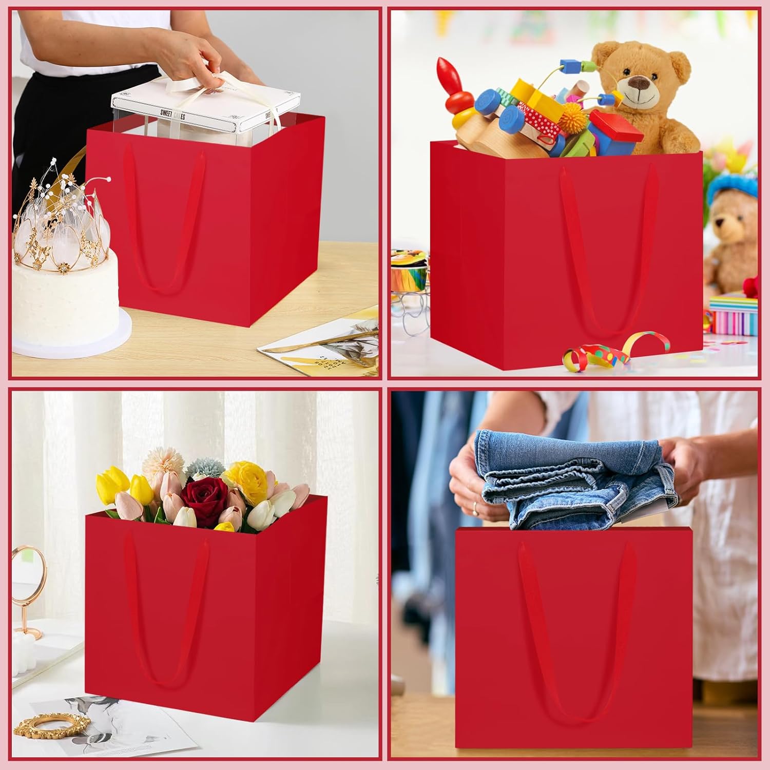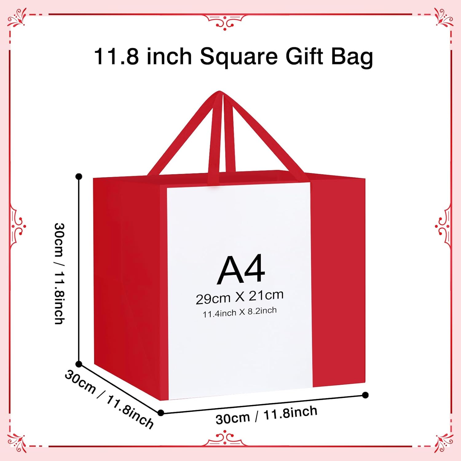 Sacchetto regalo quadrato da 11,8 pollici: riceverai 2 sacchetti regalo grandi. I sacchetti regalo grandi da 30 x 30 x 30 cm sono spaziosi ed eleganti, adatti per trasportare torte di grandi dimensioni, mazzi di fiori, piccole decorazioni, giocattoli di peluche o combinazioni multipezzo di scatole regalo. Molteplici occasioni: i sacchetti regalo di carta grandi sono perfetti per occasioni formali come matrimoni, Natale, pranzi di lavoro o eventi aziendali. Possono essere utilizzati anche nella vita quotidiana, adatti per abbigliamento, piante in vaso, cibo e altri oggetti di grandi dimensioni