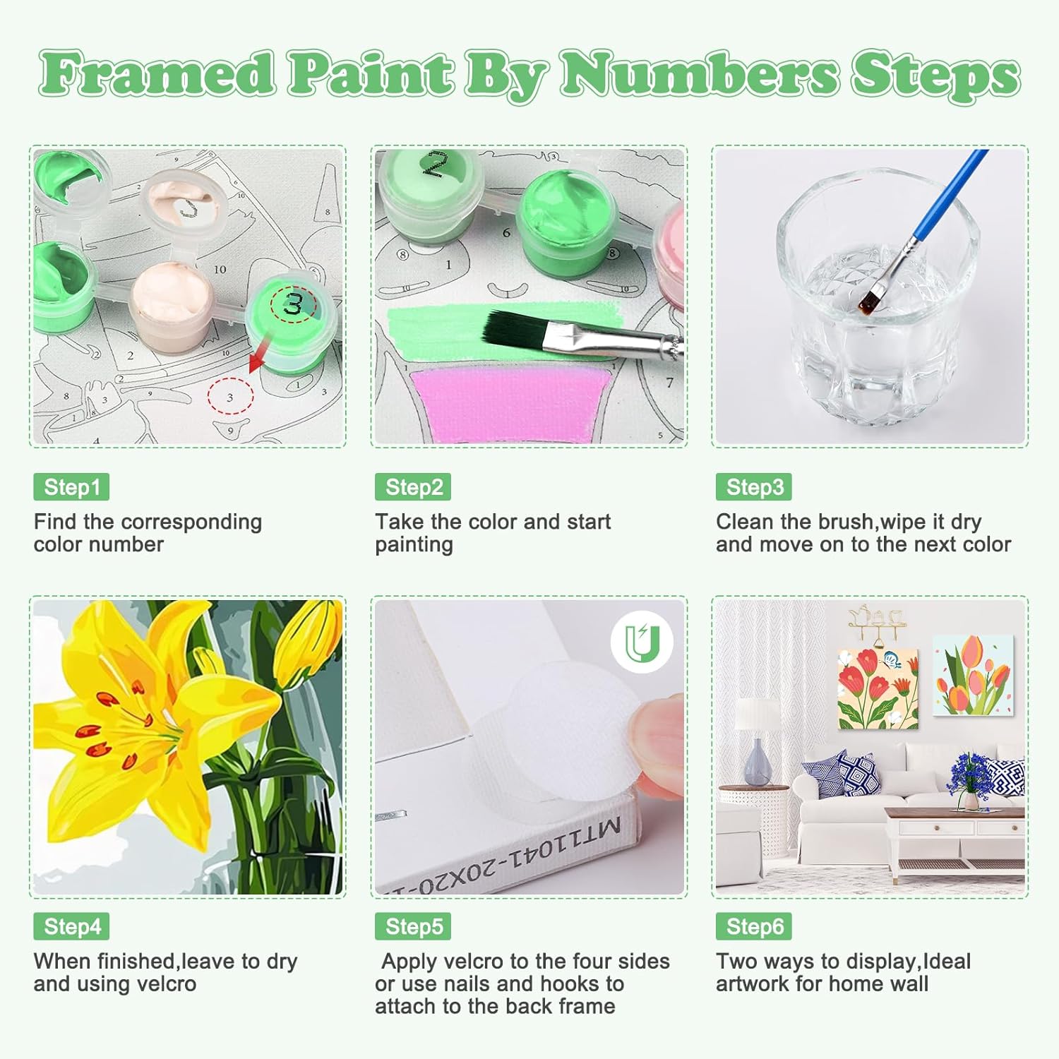 Cosa otterrai: Otterrete 4 confezioni di vernice incorniciata da kit di numero per i bambini, sono disponibili in 4 modelli diversi. Ogni kit di vernice per numero viene fornito con un set di strumenti e la vernice richiesta, quindi non è necessario acquistare strumenti aggiuntivi. (Ogni dipinto viene fornito con una cornice) Tela e pigmenti: La nostra vernice per numero per bambini è fatta di vernice acrilica sicura e sana che i bambini possono usare con fiducia. E la vernice acrilica non ha bisogno di essere diluita, può essere utilizzata dopo l'apertura, che è molto conveniente. I nostri kit di vernice per numero utilizzano tela di lino, la tecnologia di stampa ad alta definizione rende i numeri più chiari e può ridurre efficacemente lo sforzo degli occhi Fácil de dibujar: marcamos áreas y números en el lienzo, por lo que incluso sin ninguna experiencia pictórica puedes crear fácilmente hermosas imágenes. Estas áreas están claramente marcadas y numeradas, y solo es necesario coincidir el número de pintura con el número. Nuestra pintura digital está equipada con cepillos grandes, medianos y pequeños para ayudarle a manejar fácilmente cualquier área Reducir el tiempo de pantalla: la pintura digital infantil es un producto de bricolaje que requiere la mano del niño para completar la pintura. Dibujar números para un niño no solo te ayuda a alejarte de los productos electrónicos, sino que también es muy adecuado para mejorar la creatividad, la confianza en sí mismo, la atención y la capacidad práctica del niño Regalo perfecto: los pigmentos acrílicos son de colores brillantes y no se desvanecen fácilmente, pueden conservar las obras de pintura durante mucho tiempo, y los pinceles están hechos de nylon de alta elasticidad, lo que puede ayudarte a dibujar más cómodamente. ¿Si todavía dudas en regalar algún regalo a tu familia o amigos? La pintura digital naimoer debe ser una buena opción