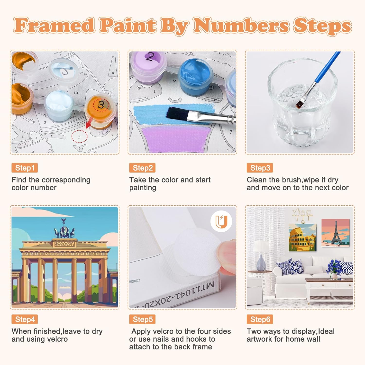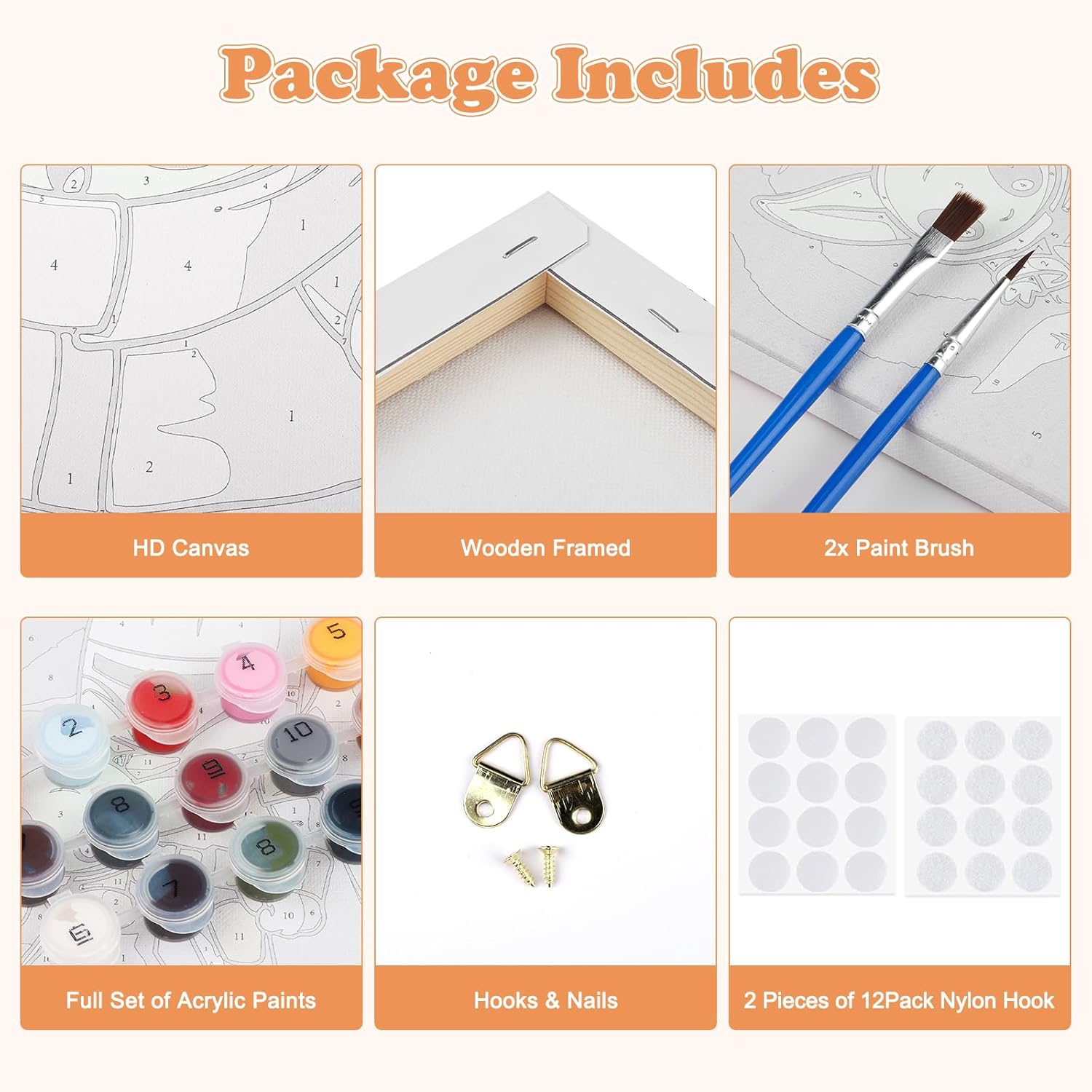 Cosa otterrai: Otterrete 4 confezioni di vernice incorniciata da kit di numero per i bambini, sono disponibili in 4 modelli diversi. Ogni kit di vernice per numero viene fornito con un set di strumenti e la vernice richiesta, quindi non è necessario acquistare strumenti aggiuntivi. (Ogni dipinto viene fornito con una cornice) Tela e pigmenti: La nostra vernice per numero per bambini è fatta di vernice acrilica sicura e sana che i bambini possono usare con fiducia. E la vernice acrilica non ha bisogno di essere diluita, può essere utilizzata dopo l'apertura, che è molto conveniente. I nostri kit di vernice per numero utilizzano tela di lino, la tecnologia di stampa ad alta definizione rende i numeri più chiari e può ridurre efficacemente lo sforzo degli occhi Fácil de dibujar: marcamos áreas y números en el lienzo, por lo que incluso sin ninguna experiencia pictórica puedes crear fácilmente hermosas imágenes. Estas áreas están claramente marcadas y numeradas, y solo es necesario coincidir el número de pintura con el número. Nuestra pintura digital está equipada con cepillos grandes, medianos y pequeños para ayudarle a manejar fácilmente cualquier área Reducir el tiempo de pantalla: la pintura digital infantil es un producto de bricolaje que requiere la mano del niño para completar la pintura. Dibujar números para un niño no solo te ayuda a alejarte de los productos electrónicos, sino que también es muy adecuado para mejorar la creatividad, la confianza en sí mismo, la atención y la capacidad práctica del niño Cosa otterrai: 6 pezzi di bella tela pre-disegnata di disegno del modello su cornice per la festa di pittura degli adulti, 6 set di vernice acrilica, 16 pennelli di alta qualità, 6 cartoline di colore guida per riferimento