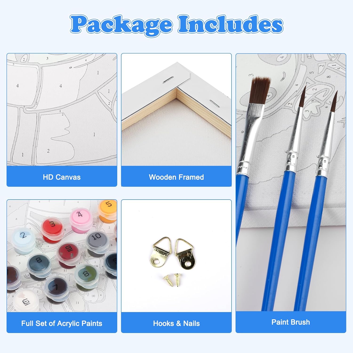 Dipingi per numero: Dipingi con i numeri kit è un ottimo modo per rilassarsi. È divertente e facile, nuovi hobby per donne e principianti di pittura, kit di arti e mestieri fai da te. Divertiti a creare una splendida opera d'arte, tutti potrebbero essere un buon artista Facile da dipingere: la tela testurizzata prestampata mostra esattamente dove dipingere ogni colore. Questo kit di pittura con numeri è adatto a tutti, età e abilità di disegno non importa. Hai solo bisogno di dipingere seguendo i numeri sulla tela, quindi creerai un dipinto eccellente da solo Decorazione perfetta: questa pittura con i numeri è una grande decorazione per la tua casa o può essere regalata ad amici, familiari o persone care come regalo sentimentale. La tela è un ottimo pezzo decorativo per uffici, camere da letto, case vacanze, bagni, salotti, ecc Migliora la qualità della vita: attività calma e rilassante per ridurre lo stress e l'ansia, migliorare le tue abilità di pittura. Paint by Numbers può aumentare la tua fiducia, rafforzare la tua memoria, costruire le tue capacità di risoluzione dei problemi. Aumenta l'autostima mentre coltivi la creatività e la crescita. Un ottimo modo per stimolare il cervello per ragazzi e ragazze, adolescenti, studenti, adulti Contenuto della confezione: tela predisegnata con bellissimo motivo su telaio per feste di pittura per adulti, 1 set di vernice acrilica, 3 pennelli di alta qualità, 1 guida a colori per cartolina di riferimento