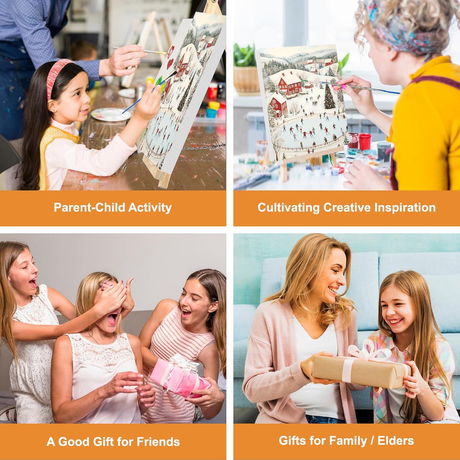 Dipingi per numero: Dipingi con i numeri kit è un ottimo modo per rilassarsi. È divertente e facile, nuovi hobby per donne e principianti di pittura, kit di arti e mestieri fai da te. Divertiti a creare una splendida opera d'arte, tutti potrebbero essere un buon artista Facile da dipingere: la tela testurizzata prestampata mostra esattamente dove dipingere ogni colore. Questo kit di pittura con numeri è adatto a tutti, età e abilità di disegno non importa. Hai solo bisogno di dipingere seguendo i numeri sulla tela, quindi creerai un dipinto eccellente da solo Decorazione perfetta: questa pittura con i numeri è una grande decorazione per la tua casa o può essere regalata ad amici, familiari o persone care come regalo sentimentale. La tela è un ottimo pezzo decorativo per uffici, camere da letto, case vacanze, bagni, salotti, ecc Migliora la qualità della vita: attività calma e rilassante per ridurre lo stress e l'ansia, migliorare le tue abilità di pittura. Paint by Numbers può aumentare la tua fiducia, rafforzare la tua memoria, costruire le tue capacità di risoluzione dei problemi. Aumenta l'autostima mentre coltivi la creatività e la crescita. Un ottimo modo per stimolare il cervello per ragazzi e ragazze, adolescenti, studenti, adulti Contenuto della confezione: confezione da 4 tele predisegnate con bellissimo motivo su telaio per feste di pittura per adulti, 4 set di vernice acrilica, 16 pennelli di alta qualità, 4 guide a colori per cartolina per riferimento