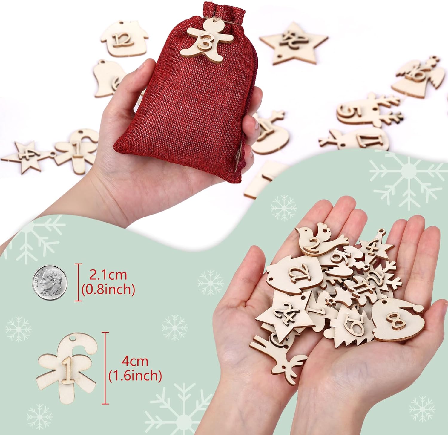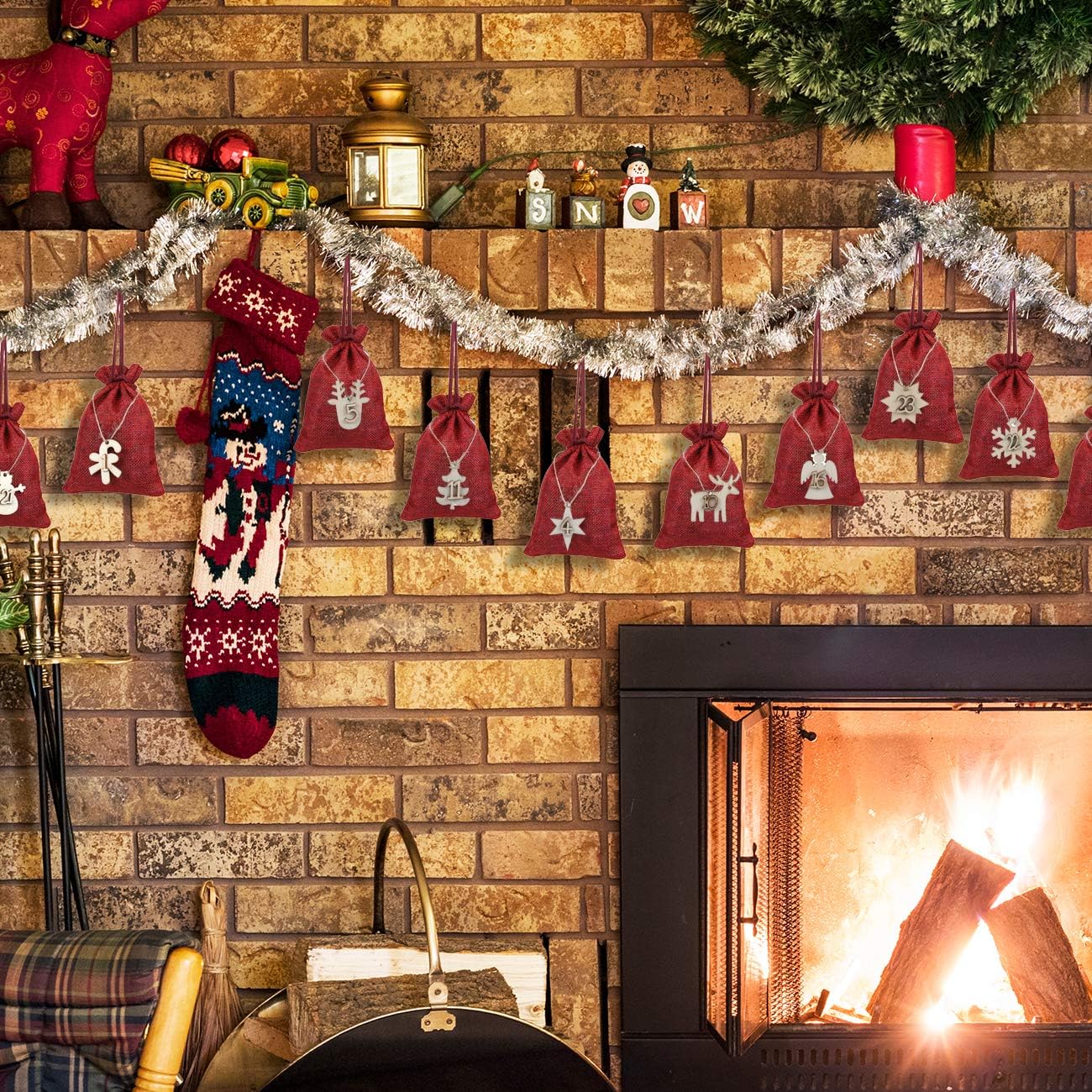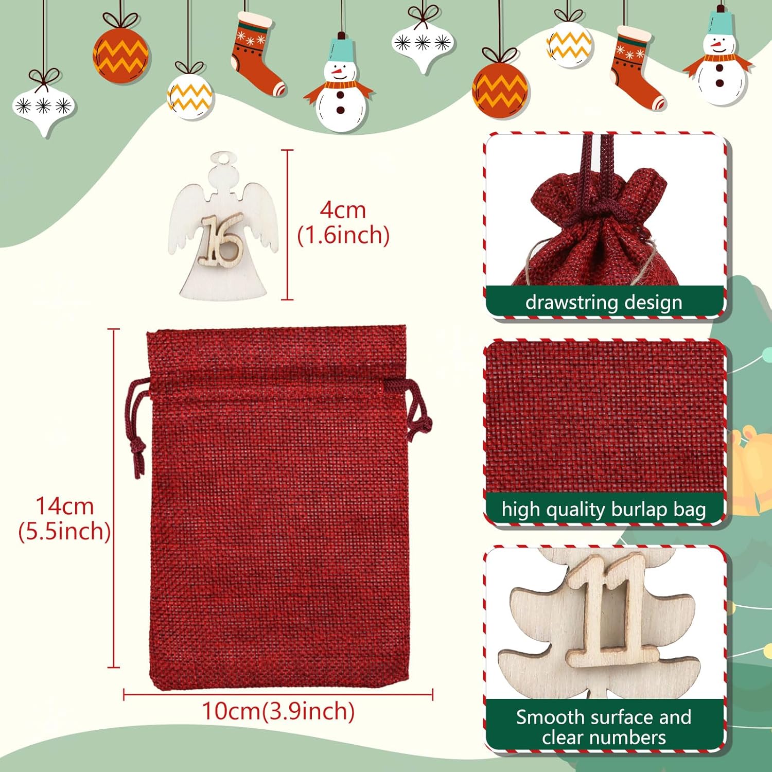 SET COMPLETO: 24 sacchetti di iuta rossa con etichette in legno numerate da 1 a 24, perfetti per un calendario dell'Avvento fatto in casa DIMENSIONE PRATICA: Ogni sacchetto di stoffa misura 10 x 14 cm, ideale per piccoli regali e sorprese MATERIALI DI ALTA QUALITÀ: Robusti sacchetti di iuta in rosso festivo con etichette decorative in legno per un tradizionale look natalizio USI VERSATILI: I sacchetti sono adatti non solo come calendario dell'Avvento, ma anche come confezione regalo o decorazione. FACILE DA USARE: Borsa con coulisse per un riempimento rapido e una chiusura sicura delle sorprese dell'Avvento