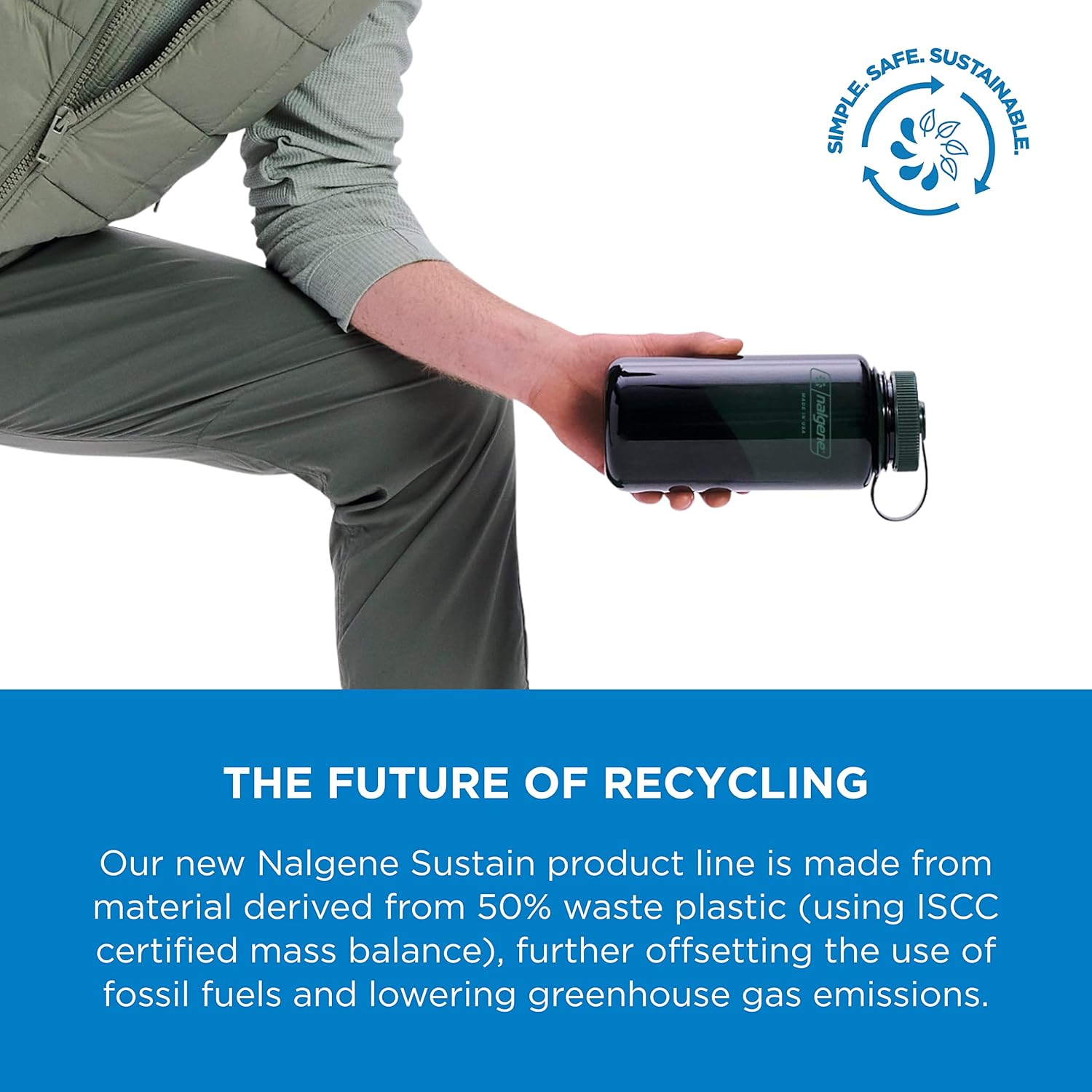 Nouveau look. La même grande bouteille d'eau Sustain fabriquée avec des matériaux dérivés de 50 % de déchets plastiques a maintenant un nouveau look. Vous pouvez recevoir une bouteille avec ou sans le logo Sustain dessus, les deux sont vos bouteilles d'eau Sustain préférées. Robustezza Longevità Scopri i migliori prodotti Nalgene per la tua avventura quotidiana.