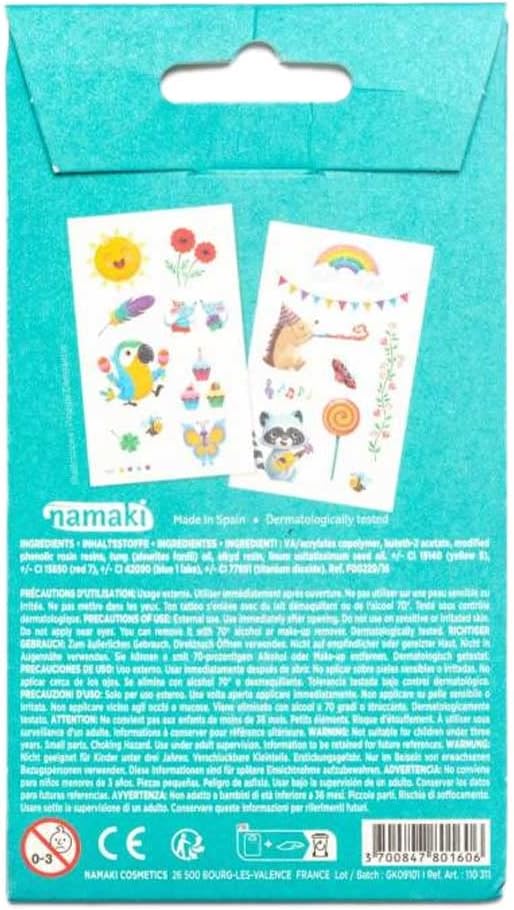 Tatuaggi colorati per bambini con diversi motivi adatti ai bambini. 2 fogli Certificato secondo COSMEBIO