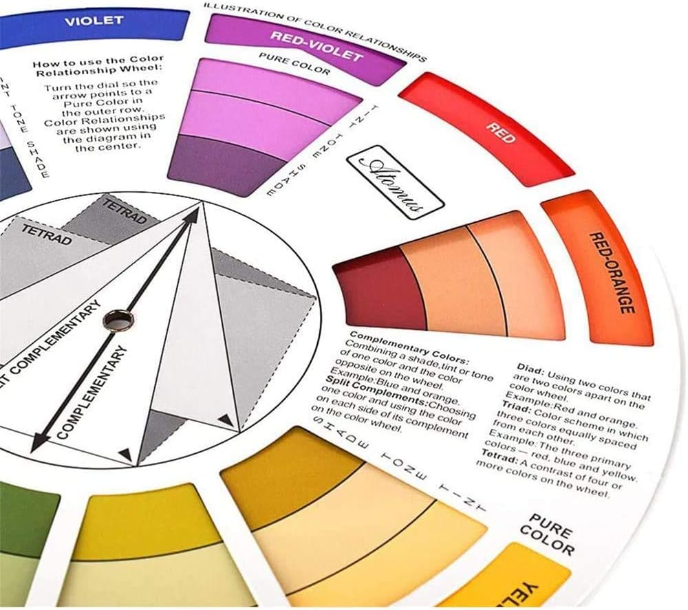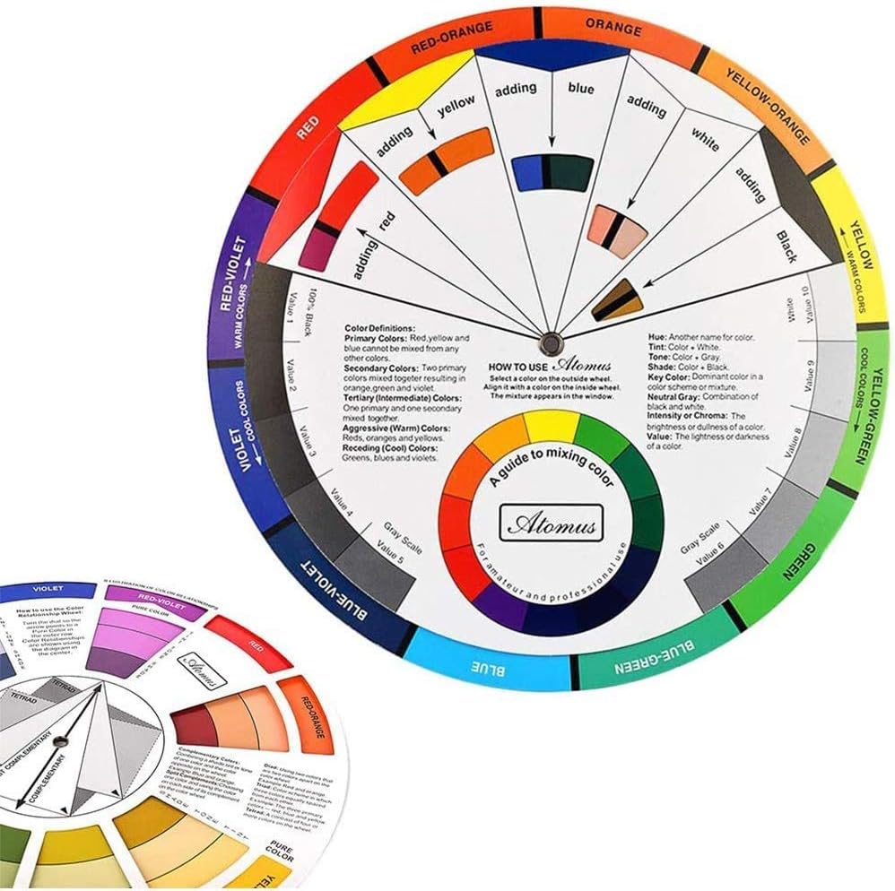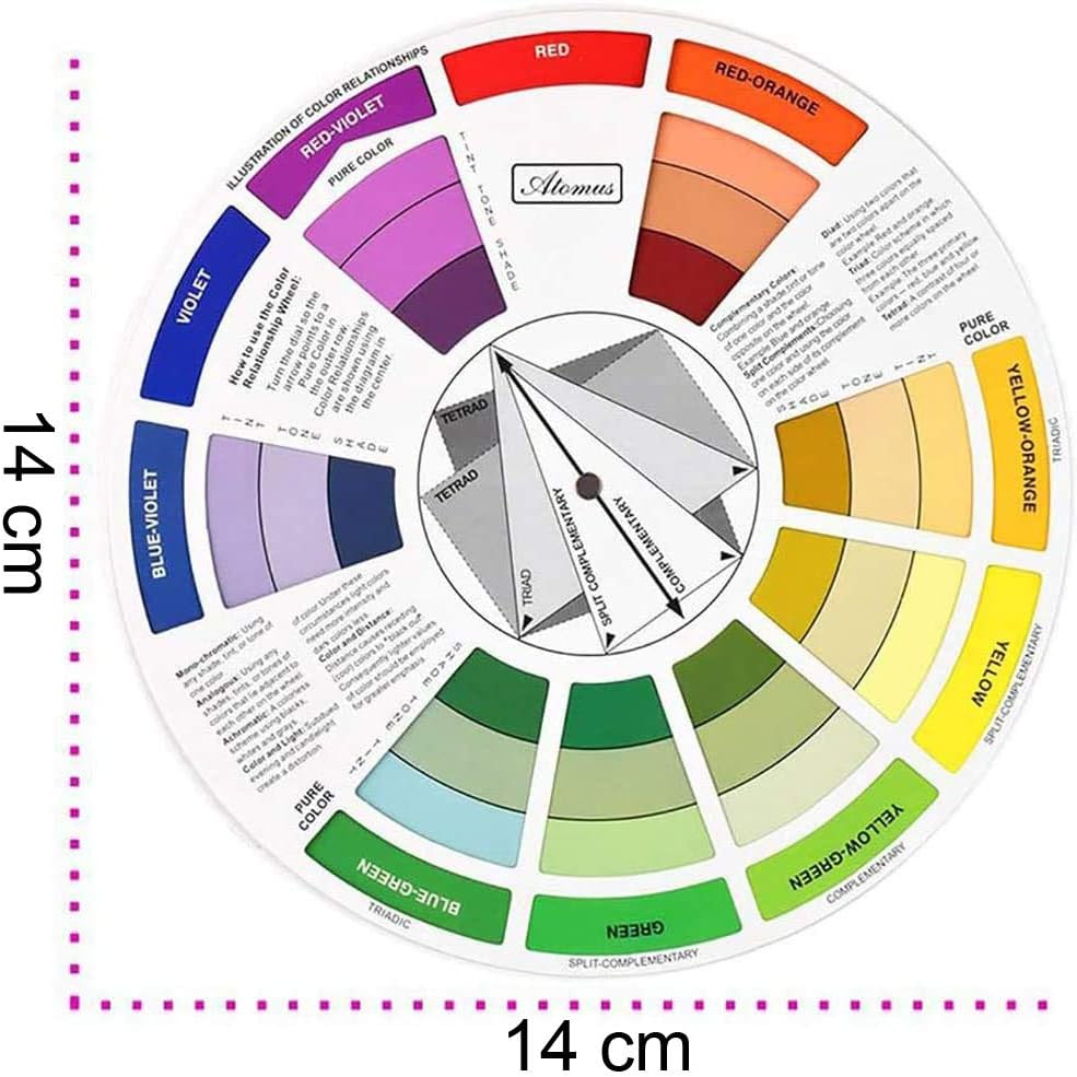 Il pacchetto include: 2 ruote colori creative, 5,5 pollici di diametro, la ruota dell'artista aiuta a mostrare quali colori sono gratuiti e come vanno (o non vanno) insieme, ottimo per imparare a colorare. Guida di miscelazione dei colori facile da usare che illustra visivamente le relazioni tra i colori e dimostra i risultati. Caratteristiche scala di grigi, tinte e toni, definizioni dei termini di colore e illustrazioni di colore. La ruota girevole su due lati mostra relazioni cromatiche, convenienti e portatili. Rivestimento UV per ridurre al minimo lo sbiadimento e proteggere dall'umidità. Buono per i principianti di identificare facilmente qualsiasi colore e riconoscere semplicemente la metà del colore.