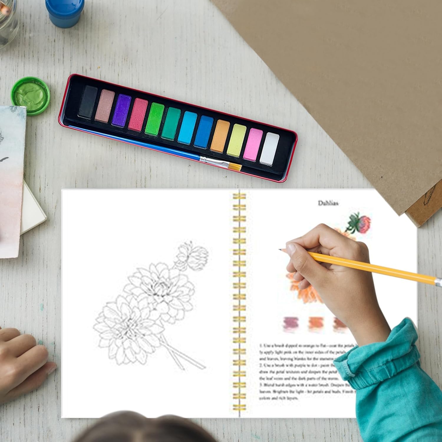 Varietà di Soggetti: Coinvolgenti tematiche come fiori e animali offrono nuova ispirazione per ogni sessione di pratica, garantendo approcci innovativi e idee fresche durante l'utilizzo del quaderno acquarello Tecniche Progressive Arte: Le lezioni passo dopo passo favoriscono un miglioramento costante, con consigli di colorazione studiati per principianti che cercano una crescita strutturata nelle abilità di pittura ad Qualità della carta eccellente: Prodotto con carta acquarello di alta gamma, elimina problemi di rigonfiamento offrendo una base ideale per opere artistiche e valorizzazione in cornice Esplorazione artistica : Dotato di una pratica rilegatura a , il quaderno è portatile, resistente e equipaggiato con pagine dalla texture liscia per supportare agevolmente l'espressione creativa. Capacità di Mescolanza Artistica: Con 12 colori vividi, realizzati con pigmenti eccellenti, progettati per fondersi senza sforzo e favorire un coinvolgimento prolungato nelle tecniche ad . La transizione tra le tonalità supporta la creatività continua.