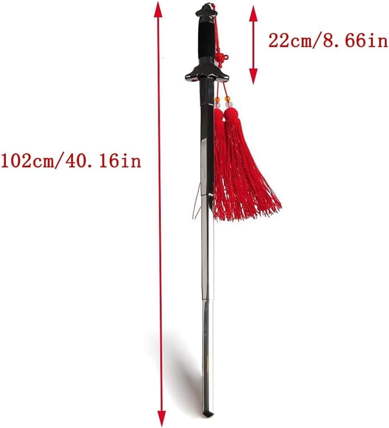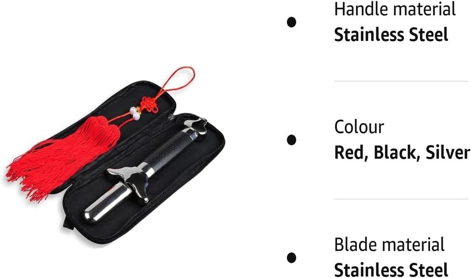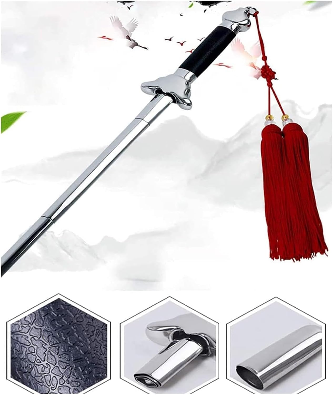 Design della maniglia: la maniglia è realizzata in materiale ABC, con piccole particelle sulla superficie del materiale, che ha un effetto antiscivolo. Design della protezione per la mano: la protezione per la spada è realizzata in acciaio inossidabile importato, non vi è spazio di saldatura e non arrugginirà mai. Design telescopico: la lama è realizzata in acciaio inossidabile spesso e ogni sezione ha una fibbia comoda da fissare e telescopica. Design delle taglie: la spada Tai Chi ha 7 taglie, adatte a persone di diversi tipi di corporatura e altezze. Applicazioni: le nappe fatte a mano sono ideali per segnalibri, telefoni cellulari, tende, abbigliamento, decorazioni per la casa, orecchini, sacchetti regalo, confezioni regalo di compleanno, regali di laurea, ecc.