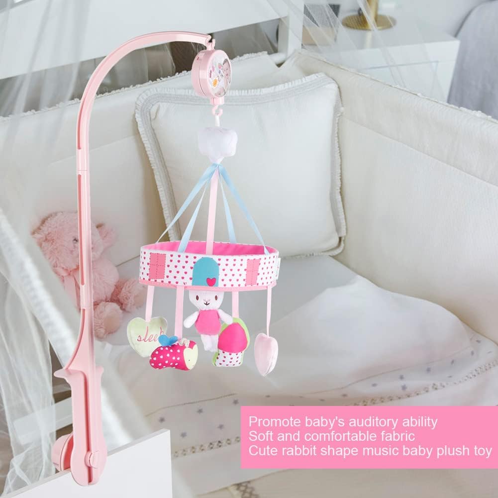 Tessuto morbido e confortevole, nessun colore che sbiadisce, caduta di lana e così via. Può essere appeso al passeggino o al lettino, ottima decorazione. Simpatico peluche per bambini a forma di coniglio, squisita fattura. Promuovi lo sviluppo uditivo e visivo del bambino, accessorio. Vieni con un carillon, la musica delicata non stimolerà le orecchie del bambino.