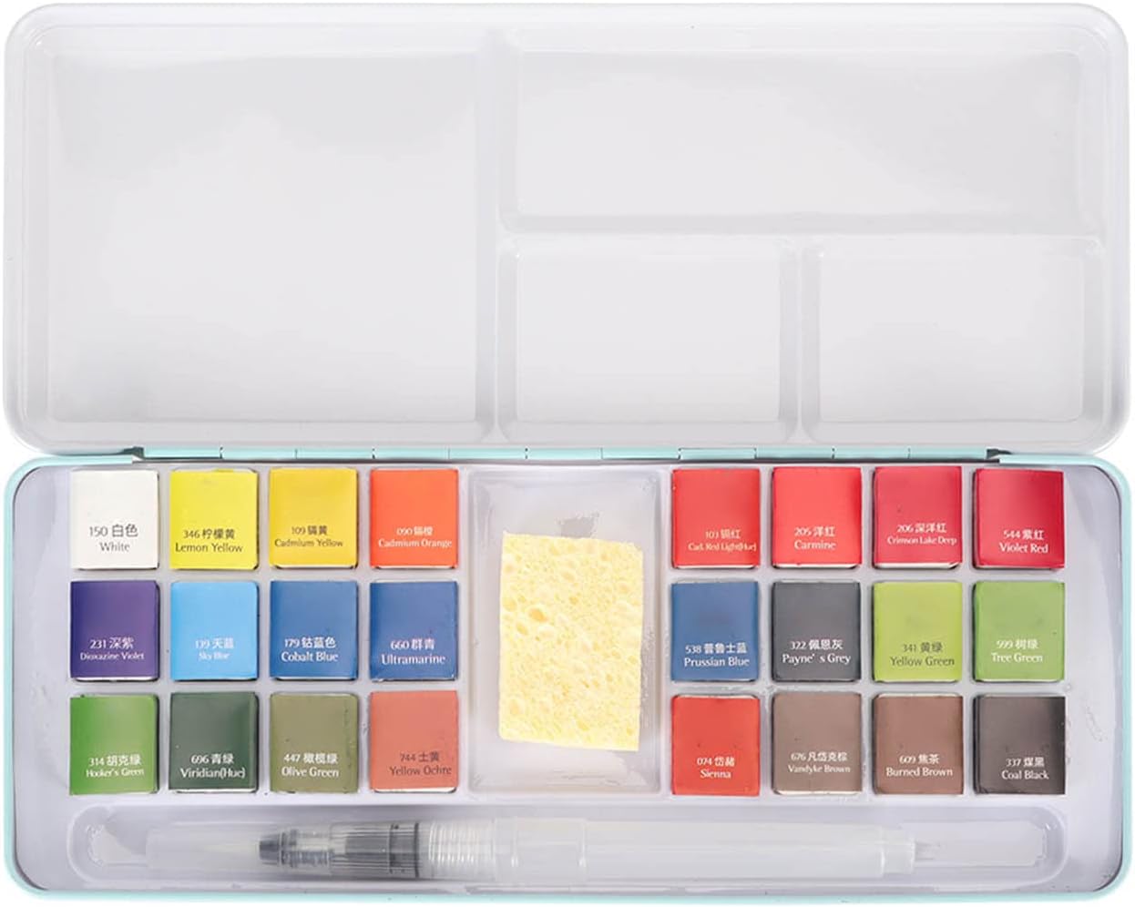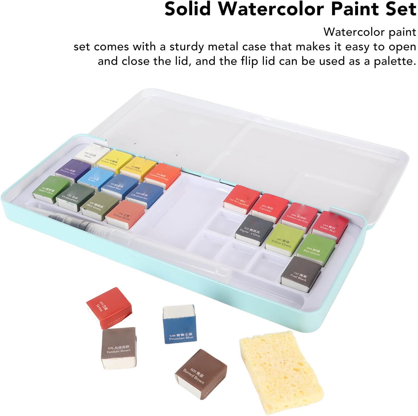 Facile da usare: set di colori ad acquerello a 24 colori con pennello incluso, l'anello di metallo sotto la custodia consente di tenere facilmente il set di colori durante la pittura. 24 colori: il set di acquerelli contiene 24 colori, con un'ampia selezione di colori per garantire una migliore miscelazione e assenza di gesso o granulosità dopo l'asciugatura. Pigmenti premium: la gomma arabica premium viene utilizzata per aumentare la brillantezza e la trasparenza, migliorare la forza del colore e rendere la vernice più solubile. Design della custodia in metallo: il set di colori ad acquerello viene fornito con una robusta custodia in metallo che facilita l'apertura e la chiusura del coperchio e il coperchio ribaltabile può essere utilizzato come tavolozza. Sicuro e divertente: i colori ad acquerello solidi sono atossici e facili da usare, belli da vedere e il per la famiglia, gli amici e chiunque ami dipingere.