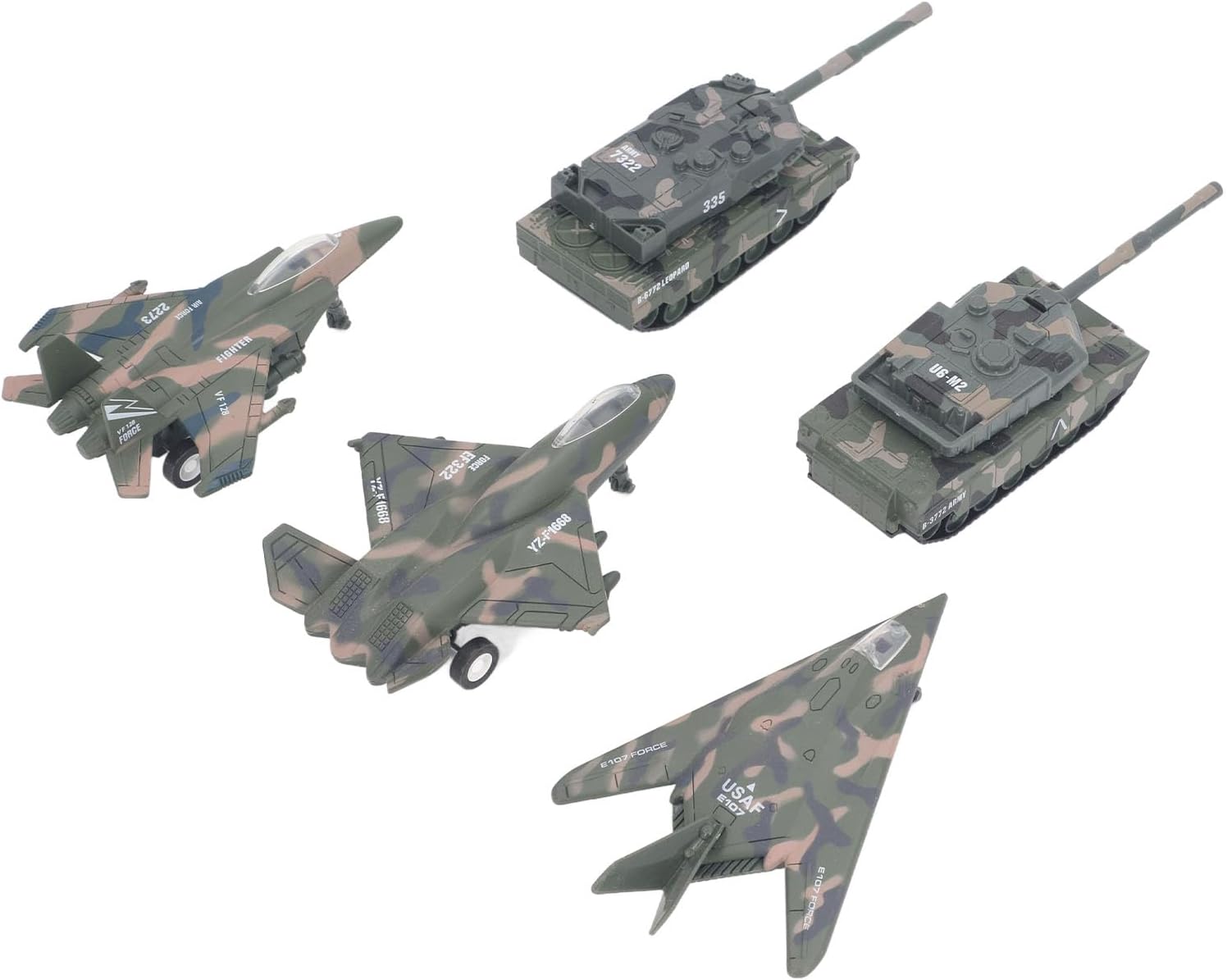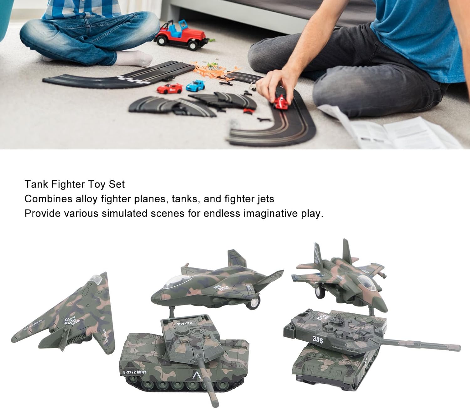 DESIGN UNICO: Con proporzioni accurate e una struttura compatta, questi giocattoli offrono un tempo di gioco realistico e interattivo, migliorando l'immaginazione, la destrezza e le capacità di lavoro di squadra dei bambini. COMBO MULTIFUNZIONALE: il set di giocattoli da combattimento con carri armati combina aerei da combattimento in lega, carri armati e aerei da combattimento, fornendo varie scene simulate per un gioco fantasioso senza fine. GRANDE VALORE DA COLLEZIONE: ideale per gli appassionati di carri armati, questo modello mostra il tuo fascino verso la tecnologia storica. Un'aggiunta perfetta ai tuoi oggetti da collezione! REALIZZATO CON PRECISIONE: Realizzato con materiali in lega di qualità, questo set di giocattoli replica meticolosamente gli intricati dettagli 'attrezzatura reale, offrendo un'esperienza realistica per i giovani appassionati. MATERIALE DI QUALITÀ ECCELLENTE: Realizzato in lega resistente, il nostro giocattolo modello di carro armato garantisce longevità e resistenza, facendolo durare a lungo.