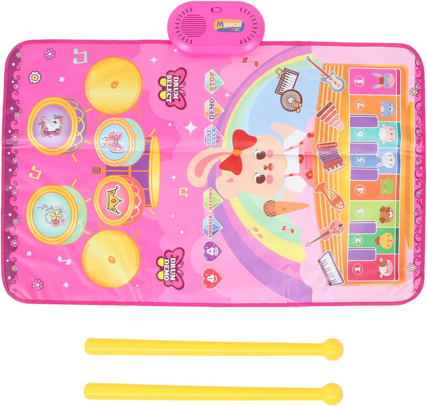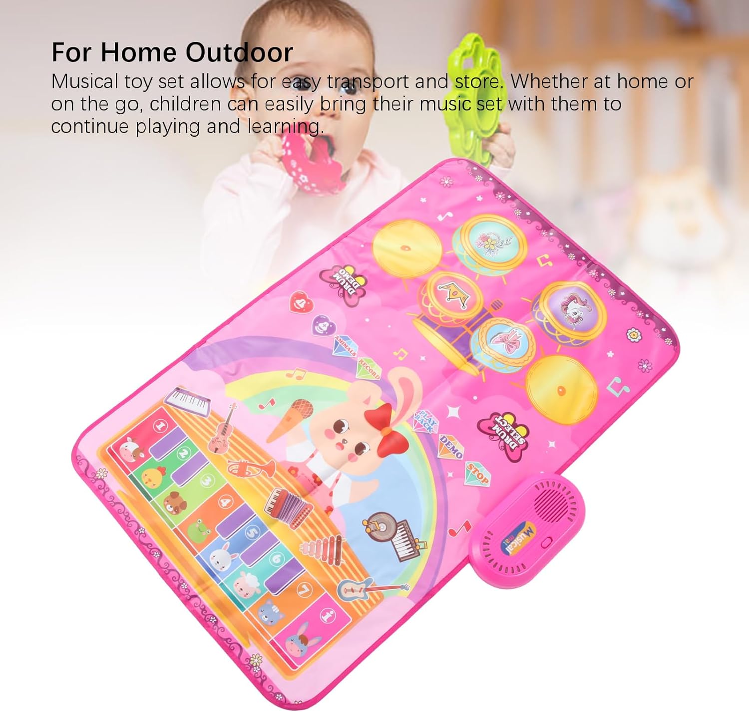 Per la casa all'aperto: il set di giocattoli musicali consente un facile trasporto e stoccaggio. A casa o in viaggio, i bambini possono facilmente portare con sé il loro set musicale per continuare a giocare e imparare. Giocattolo divertente: dotato di bacchetta, questo set di giocattoli musicali offre un gioco interattivo e coinvolgente per i bambini, consentendo loro di esprimersi liberamente attraverso la musica e sviluppare la coordinazione occhio-mano e la creatività. Giocattolo educativo precoce: il tappetino per batteria aiuta a promuovere il potenziale musicale dei bambini e a sviluppare il senso del ritmo in giovane età. Introducendo i bambini al mondo della musica, questo set di giocattoli può anche aiutare a coltivare un interesse permanente per la musica e fornire una base per l'educazione musicale. Impermeabile: realizzato in materiale impermeabile, questo set di giocattoli musicali è facile da pulire e mantenere, garantendo che i bambini possano giocare senza preoccuparsi di schizzi o disordini. Questa caratteristica lo rende ideale sia per uso interno che esterno, consentendo ai bambini di ascoltare la musica ovunque vadano. Design multifunzionale innovativo: l'innovativo design multifunzionale include un tappeto musicale, un tamburo jazz, un tasto del e un tamburo giocattolo, offrendo ai bambini un'esperienza di gioco diversificata e arricchente che stimola la loro immaginazione e creatività.
