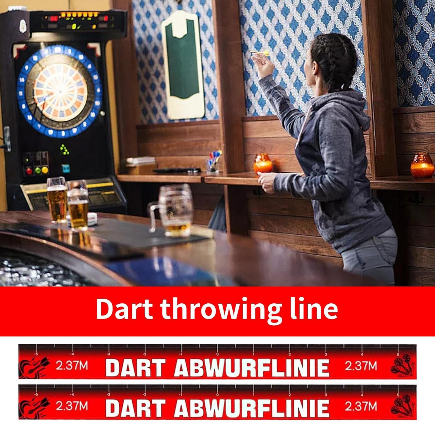 Configurazione ottimale delle freccette: incoraggia il posizionamento accurato del piede e l'allineamento ideale per migliorare la precisione e la ripetibilità, stabilendo al contempo una linea di lancio distinta per ambienti di competizione bilanciati Linee per freccette pronte per il gioco: con due linee di dimensioni standard che misurano 56 x 5 cm, questo pacchetto fornisce tutto il necessario per i giochi di freccette, garantendo prestazioni affidabili e integrazione senza soluzione di continuità nella tua area di gioco Facile installazione: progettato per una facile installazione e rimozione, aderisce efficacemente a varie superfici del pavimento, fornendo un'esperienza facile per gli utenti di tutti i livelli di abilità senza consumare tempo o sforzo extra Prestazioni di lunga durata: realizzato in robusta carta patinata con forte adesivo, resiste all'uso ripetuto e mantiene il suo aspetto senza staccarsi o sbiadire Applicazione completa: un must per gli appassionati di giochi, funziona bene in casa, bar o feste, offrendo una configurazione professionale di freccette che garantisce divertimento e versatilità ovunque utilizzato