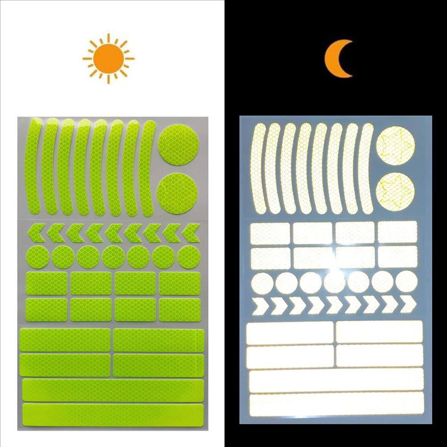 Questi adesivi riflettenti sono altamente adesivi e comodi da usare. Basta staccarli e incollarli su qualsiasi superficie liscia La lunghezza può essere tagliata secondo necessità, adattandosi in modo flessibile alle diverse dimensioni della ruota Non facile da staccare, resistente e impermeabile. In grado di resistere alla maggior parte delle condizioni meteorologiche e delle condizioni stradali per il ciclismo Adatto per auto, camion, moto, biciclette. Può essere usato come decorazione, aggiunge personalizzazioni e moda Gli adesivi realizzati in materiali riflettenti possono riflettere efficacemente la luce delle biciclette e migliorare l'attenzione degli altri verso il ciclista