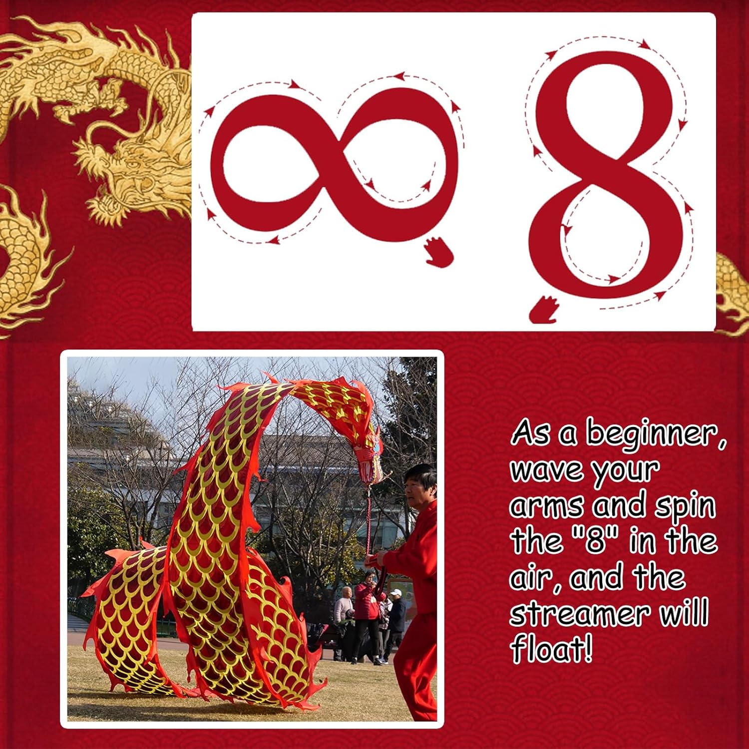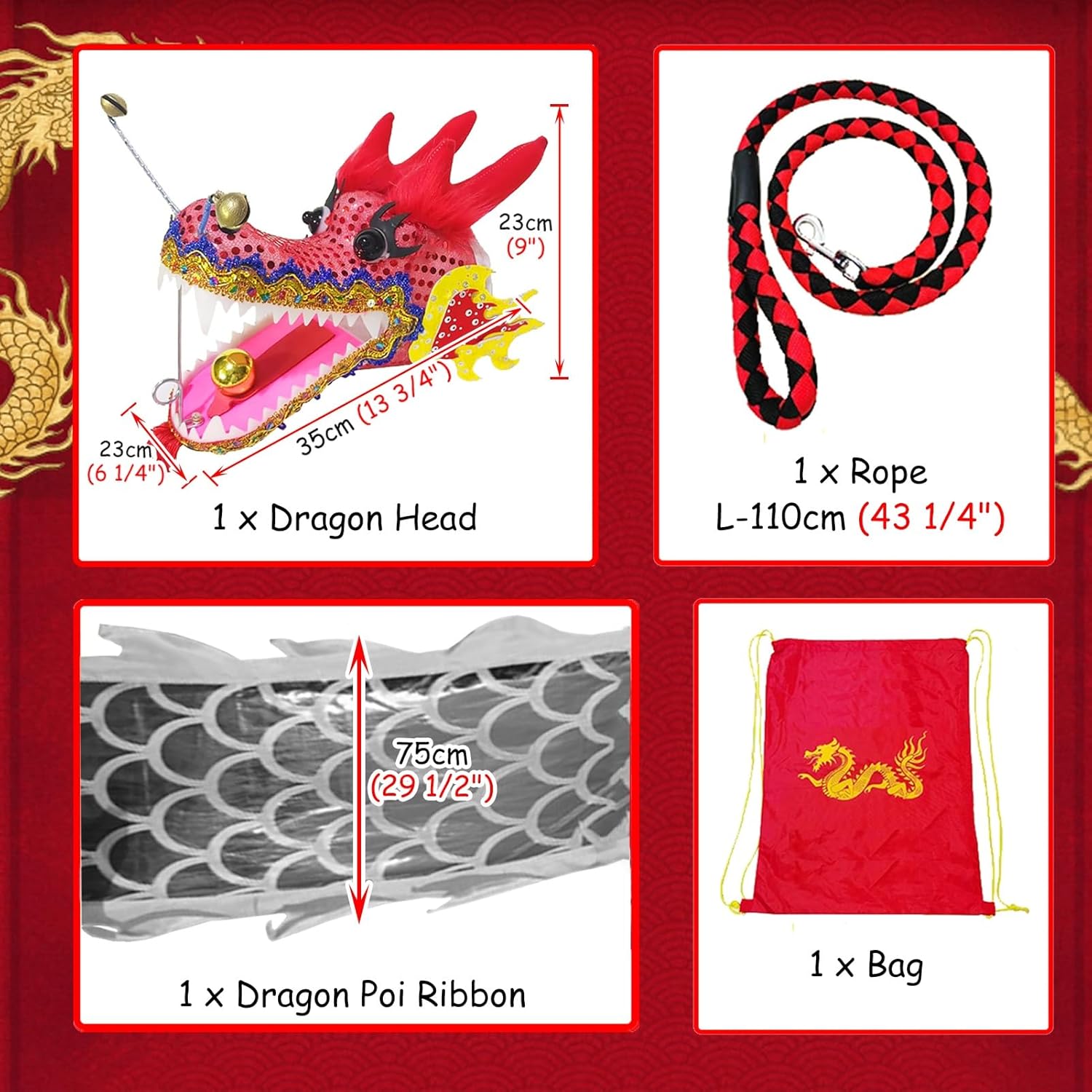 ☑️【Nastro Danza del Drago Poi】La danza del drago è un intrattenimento tradizionale cinese, le stelle filanti fluenti sono molto ornamentali. Può portare molto divertimento alla tua famiglia. Tieni le persone lontane dagli schermi, goditi il gioco e arricchisci la tua vita. ☑️ 【Streamer del drago colorato e durevole】 Corpo del drago in tessuto stampato, non consigliato per il lavaggio, testa di drago in plastica 3D realistica, resistente alle cadute e non facile da rompere, robusta corda lunga e zaino portatile. ☑️【Danzatrice di nastri per fitness all'aperto】Far oscillare i nastri della danza del drago può allungare il tuo corpo. Esercita la spalla, il collo e la colonna lombare, migliora la flessibilità articolare, rilascia lo stress e l'ansia. ☑️ 【Regalo creativo e artistico】 I nastri da danza del drago sono il regalo perfetto per bambini, adolescenti, adulti e anziani che amano i draghi cinesi! Puoi fare esercizi di fitness, balli, giocolerie, spettacoli di talenti in cortili, parchi, spiagge e altri spazi spaziosi. ☑️ 【Facile da montare e utilizzare】 Collega la corda alla testa del drago, quindi incolla insieme la testa del drago e il nastro del drago, infine stringi la corda attorno al drago. Come principiante, agita le braccia e fai girare l'"8" in aria, e lo striscione volerà!