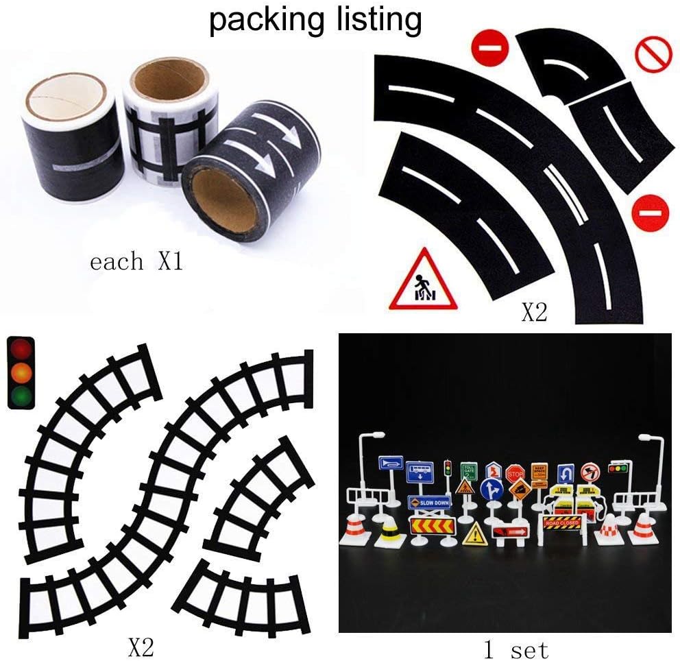 La riproduzione del nastro e' basata su carta, quindi non sono necessarie forbici o coltelli affilati. Non lascia residui, lacrime facili. Semplice da usare, basta srotolare il nastro del gioco, attaccare a qualsiasi superficie piana e lasciare che l'immaginazione di tuo figlio guidi Traccia nastro a 3 rotoli (4,8 cm * 5 m) Traccia +4 curve + 1 insegne stradali L'immaginazione di un bambino e' la loro piu' grande fonte di divertimento, e il nastro di riproduzione e' perfetto per costruire il proprio mondo di strade, autostrade e circuiti. Crea strade istantanee in qualsiasi momento.