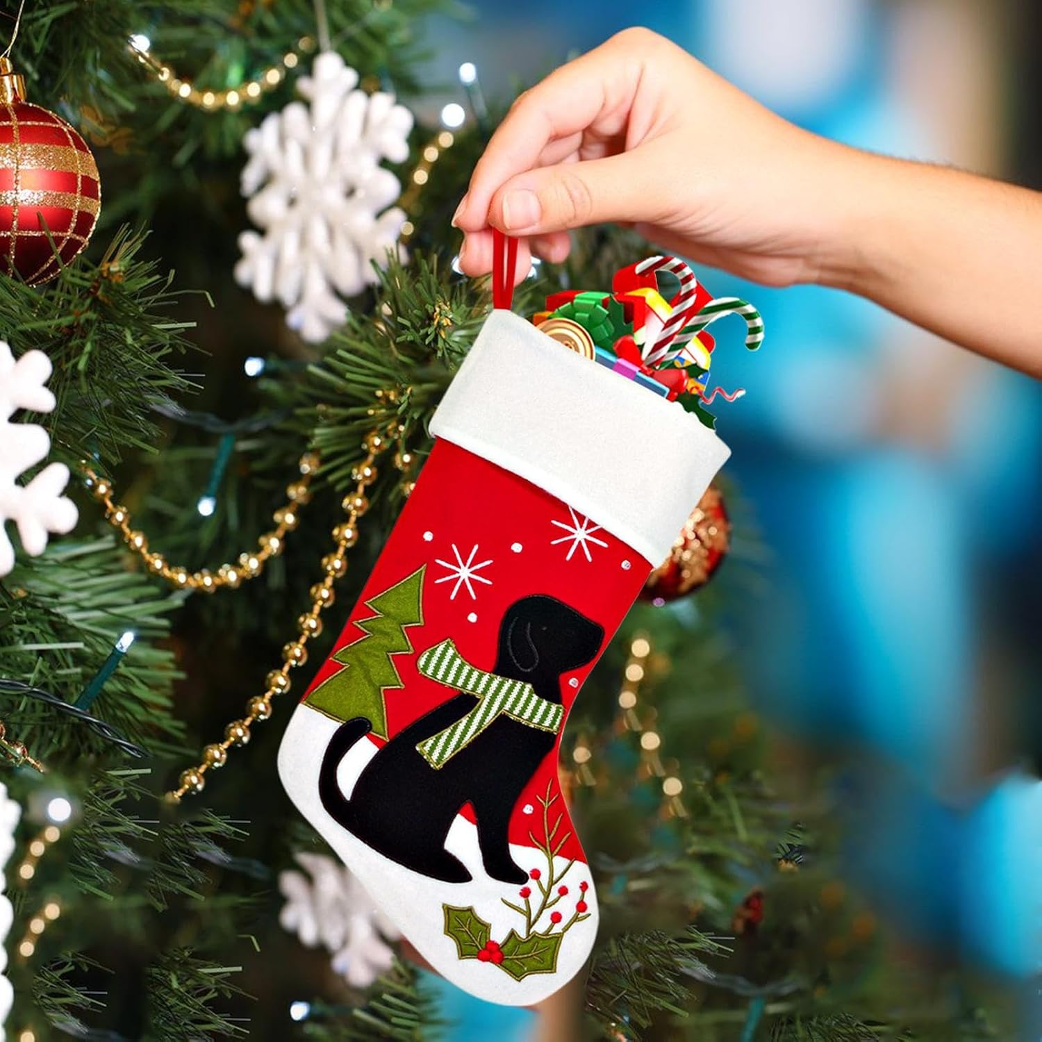 Tocco natalizio Capriccioso: i grandi calzini natalizi includono un vivace ricamo di cani e gatti che dona un'atmosfera festosa allegra e dinamica, offrendo un tocco affascinante a tema animale domestico per esaltare le decorazioni stagionali e deliziare i bambini durante allegri incontri invernali, promuovendo un ambiente familiare e rendendo il Natale un'esperienza magica e indimenticabile. Pratica conservazione festiva: con un design di grande capacità, queste calze natalizie possono contenere caramelle, giocattoli e altri oggetti, presentando un modo affascinante e utile per mostrare regali sotto l'albero. Arricchiscono le tue feste stagionali senza sforzo, integrando funzionalità e stile nella decorazione natalizia per creare esperienze divertenti e memorabili in ogni riunione di famiglia. Accessorio festivo riutilizzabile: i calzini natalizi familiari aggiungono alla decorazione delle feste, facilitando lo scambio di regali. Incoraggiano la felicità condivisa tra le famiglie durante le amate festività stagionali, creando momenti indimenticabili insieme e rafforzando le tradizioni natalizie. Aggiunta calda: questa calza natalizia combina il rustico country con vivaci colori natalizi, offrendo un'estetica classica natalizia senza tempo che porta calore all'arredamento della tua casa e migliora l'atmosfera festiva in qualsiasi ambiente, perfetta per creare una sensazione allegra e allegra durante le vacanze, con un design che integra elementi tradizionali e vivaci per un tocco natalizio unico. Calzini per camino: con posizionamento regolabile e versatile funzionalità per l'esposizione al camino, questi calzini natalizi servono come decorazione a punto focale che esalta la tua area dell'albero. Sono eccellenti per diffondere gioia in qualsiasi spazio di soggiorno confortevole o riunione, portando alla decorazione natalizia e rendendo le celebrazioni più vivaci e memorabili per tutti i presenti, con un design che si integra senza sforzo.