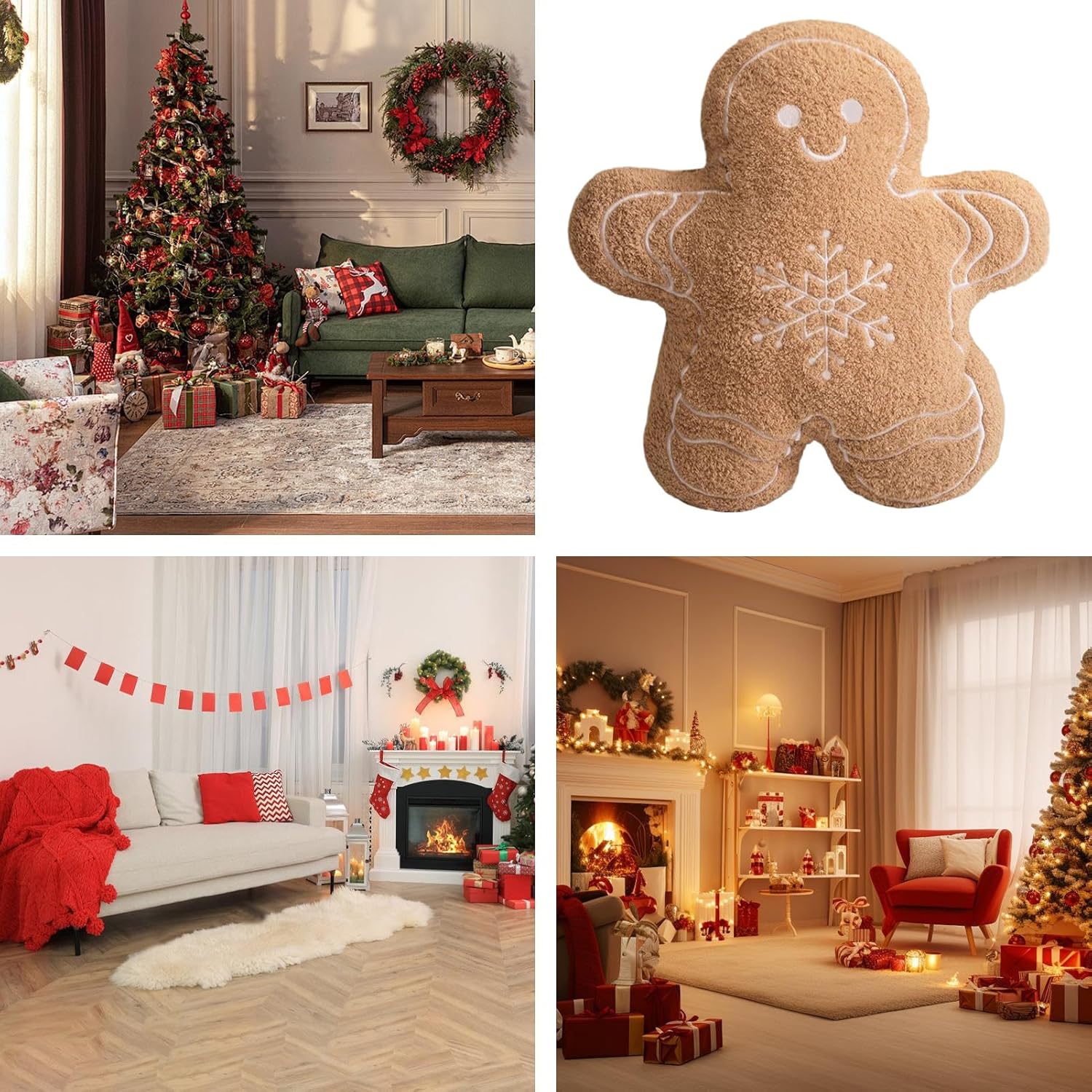 Atmosfera di celebrazione migliorata: con affascinanti elementi natalizi, questi cuscini infondono uno spirito gioioso alle case, garantendo che il tuo spazio sia accogliente e perfettamente adatto per i momenti festivi tutto l'anno Ampi usi: questi cuscini natalizi portano calore agli spazi abitativi, migliorando il comfort e l'allegria per riunioni di famiglia o feste e garantendo un utilizzo versatile in più aree della tua casa durante le festività natalizie Soluzione confortevole: realizzato per fornire un supporto ergonomico, questo cuscino natalizio è perfetto per coccolarsi durante le fredde notti invernali o da mostrare come parte dell'arredamento delle vacanze; la sua combinazione di praticità e fascino visivo garantisce un maggiore relax insieme a un'atmosfera calda e invitante Struttura morbida e resistente: con materiale felpato di alta qualità e imbottitura in cotone PP, il cuscino di pan di zenzero mantiene la sua forma nel tempo, fornendo una morbidezza costante e rendendolo una scelta ideale per il relax o la decorazione a tema festivo in qualsiasi ambiente confortevole Manutenzione semplice: il cuscino natalizio fornisce una pulizia semplice e una cura senza sforzo, consentendo di ritrovare facilmente la sua forma attraente dopo la manipolazione, garantendo che il tuo spazio rimanga allegro e luminoso