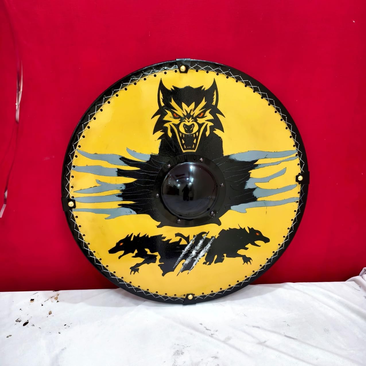 Fenrir Wolf Viking Shield, scudo medievale scudo personalizzato scudo nordico larp vichingo scudo arredamento battaglia sca, scudo sca Ideale per giochi di ruolo dal vivo (live action role playing), bambini, cosplay, Halloween, travestimenti, oggetti di scena teatrali e rievocazioni storiche. Regalo unico per collezionisti medievali: scudo vichingo può essere utilizzato anche in produzioni teatrali, feste di Halloween, feste in costume, giochi di vestire e molto altro ancora. Lo scudo sarebbe perfetto per il Festival del Rinascimento nella tua zona, alcune risse nel cortile tra amici, eventi LARP o rievocazioni storiche. Dai vita al tuo tema medievale, costume o produzione con questo squisito articolo realizzato a mano e rifinito La sua struttura leggera ti assicura di poterlo impugnare con facilità durante le tue epiche battaglie. Con il suo design indossato da battaglia, questo scudo ti farà sentire come un vero guerriero. Materiale: legno Dimensioni: 61 cm