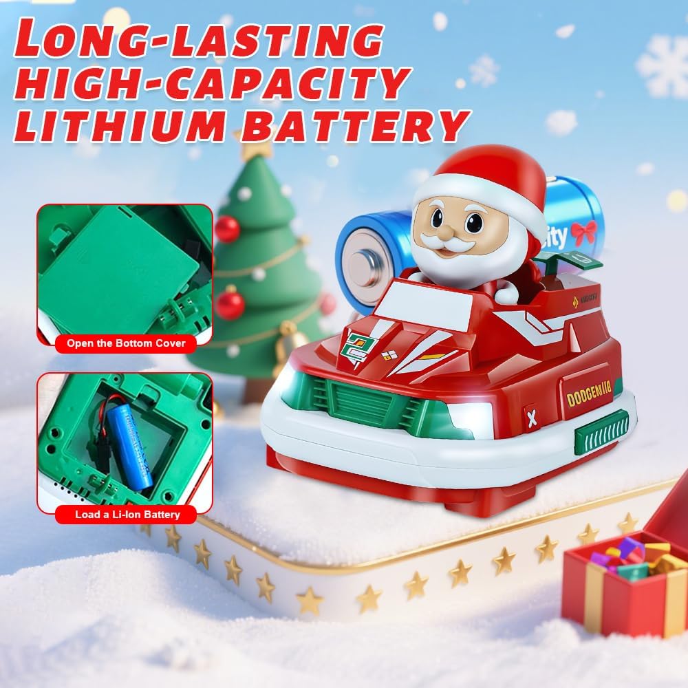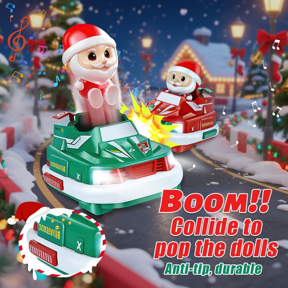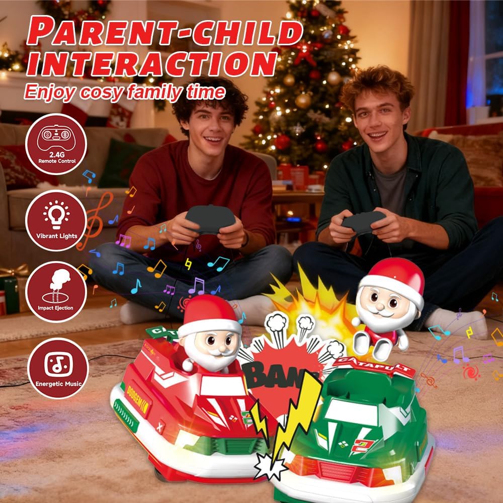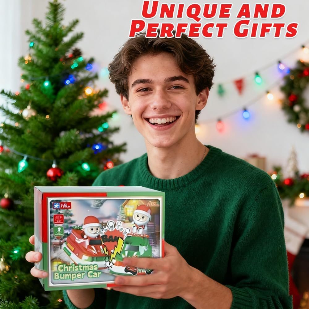 2 auto telecomandate per Natale: si tratta di un nuovissimo modello di auto tamponeuse RC telecomandate che vi offrirà nuove emozionanti esperienze. Il nostro ultimo giocattolo di auto a scontro RC comprende 2 auto da corsa natalizie, 2 Babbo Natale rimovibili, 4 batterie ricaricabili per la corsa e 2 telecomandi. Due velocità: le auto a scontro telecomandate hanno due velocità che possono essere commutate, applicabili a diverse situazioni di competizione. Inoltre, la banda di frequenza 2,4 GHz da 50 m, molto stabile e reattiva, consente a più giocatori di giocare contemporaneamente con l'auto da corsa senza interferenze. E la deriva libera a 360 gradi offre un'esperienza di gioco migliore, ideale per trascorrere del tempo con la famiglia e gli amici. Sicuro e resistente: le auto telecomandate sono realizzate in plastica di alta qualità e robusta, che non solo è resistente, ma anche molto liscia. La sicurezza è garantita e anche la giocabilità è molto elevata. Puoi conquistare facilmente il terreno, che si tratti di terra, spiaggia, erba o scale. Luci/effetti sonori/batterie: ogni auto telecomandata è dotata di fari bianchi realistici. Inoltre, quando giocano con questi veicoli ispirati ai cartoni animati, gli utenti possono attivare effetti sonori distintivi, come il rombo del motore. Per il funzionamento dell'auto sono fornite due batterie ricaricabili 4*, mentre il telecomando richiede due batterie AA. Regalo di Natale ideale: le auto a scontro telecomandate sono un ottimo regalo. Stimolano l'immaginazione, migliorano la coordinazione occhio-mano e incoraggiano lo spirito di esplorazione e la competitività. Sono anche il regalo perfetto per compleanni, Natale, Pasqua e altre occasioni festive.