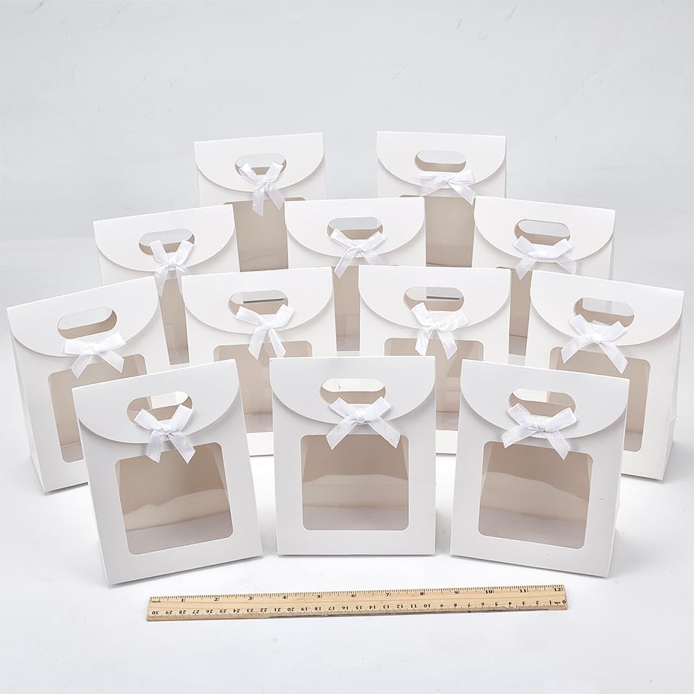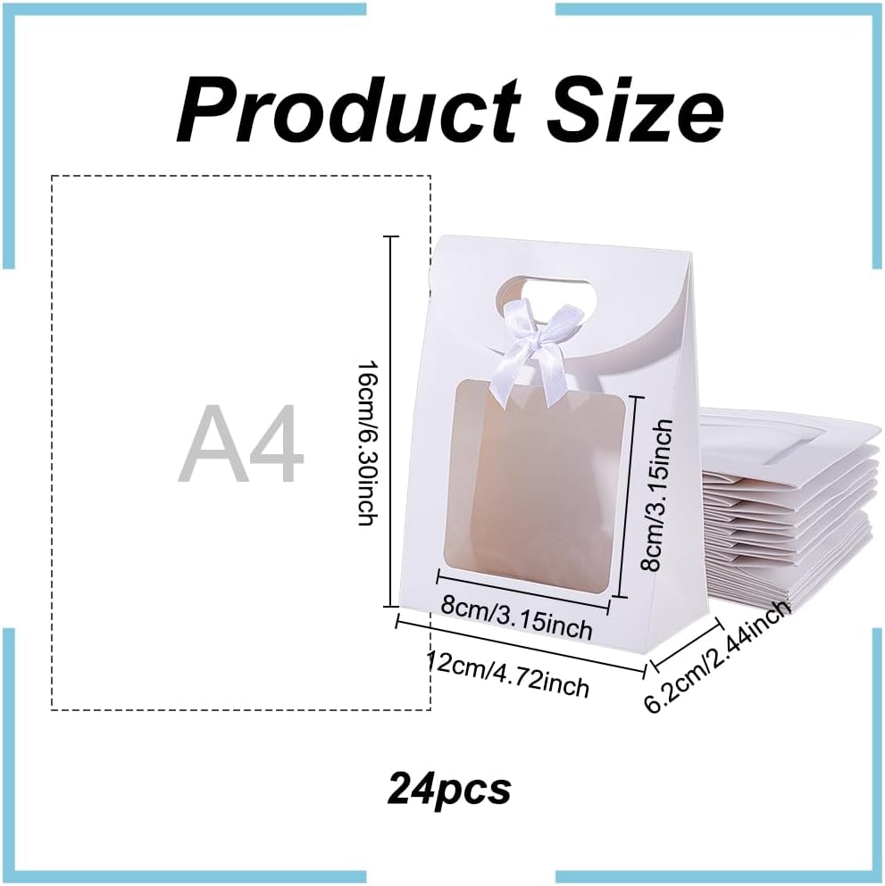 Quantità e dimensioni - Riceverai 24 pezzi di sacchetti di carta kraft bianchi, le dimensioni sono circa 0,5 cm di larghezza, 16 cm di lunghezza, 15,5 cm di altezza, apertura: 16×12×6,2 cm, finestra: 8x8 cm Design accurato: i nostri sacchetti di carta non sono solo dotati di robuste maniglie per un facile trasporto, ma hanno anche finestre trasparenti per rendere chiaramente visibile il contenuto dei sacchetti di carta. E il sacchetto di carta ha un design autoportante, che può garantire che tutto all'interno possa rimanere in posizione verticale. Alta qualità: la borsa regalo è realizzata in carta resistente con superficie e bordi lisci, aspetto attraente, taglio tridimensionale e costruzione eccellente. La base spessa consente di stare facilmente in posizione verticale. Sono incluse robuste cinghie di trasporto in tessuto per un facile trasporto. Personalizza la tua borsa: queste borse kraft sono bianche, pura carta kraft, puoi decorarle con disegni, coloranti, ecc. Per festività diverse come sacchetti regalo per i tuoi cari. Inoltre, come borsa commerciale, puoi pinzare il tuo biglietto da visita o aggiungere il tuo logo all'esterno della borsa. Ampio utilizzo: queste eleganti scatole possono essere utilizzate per diverse occasioni, possono essere utilizzate come confezione regalo creativa per i regali di Natale. È il partner perfetto per matrimoni, compleanni, feste, regali nuziali, festival e puoi personalizzare queste scatole regalo esclusive per te attraverso pennelli e adesivi