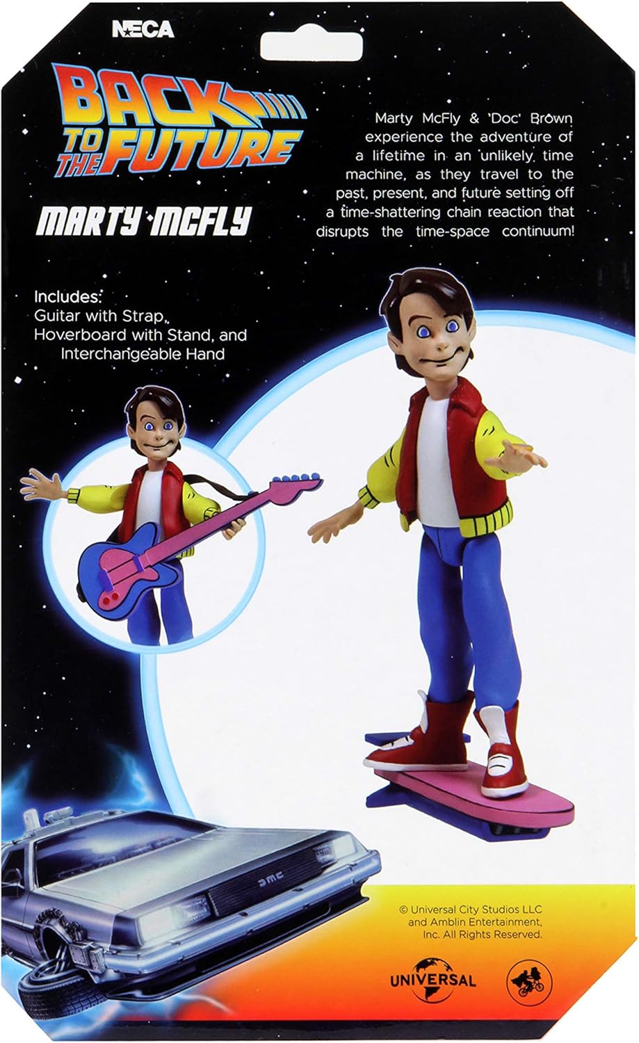 Marty McFly - Toony Classics - Ritorno al futuro - NECA Basandosi sulle loro apparizioni in Ritorno al futuro: la serie animata, Marty, Doc e Biff si stanno dirigendo verso la linea Toony Classics, una versione divertente degli amati personaggi del cinema e della televisione! La figura di Ritorno al futuro TAS Toony Classics Marty McFly da 6 pollici viene fornita con la chitarra Viene fornito in confezione blister
