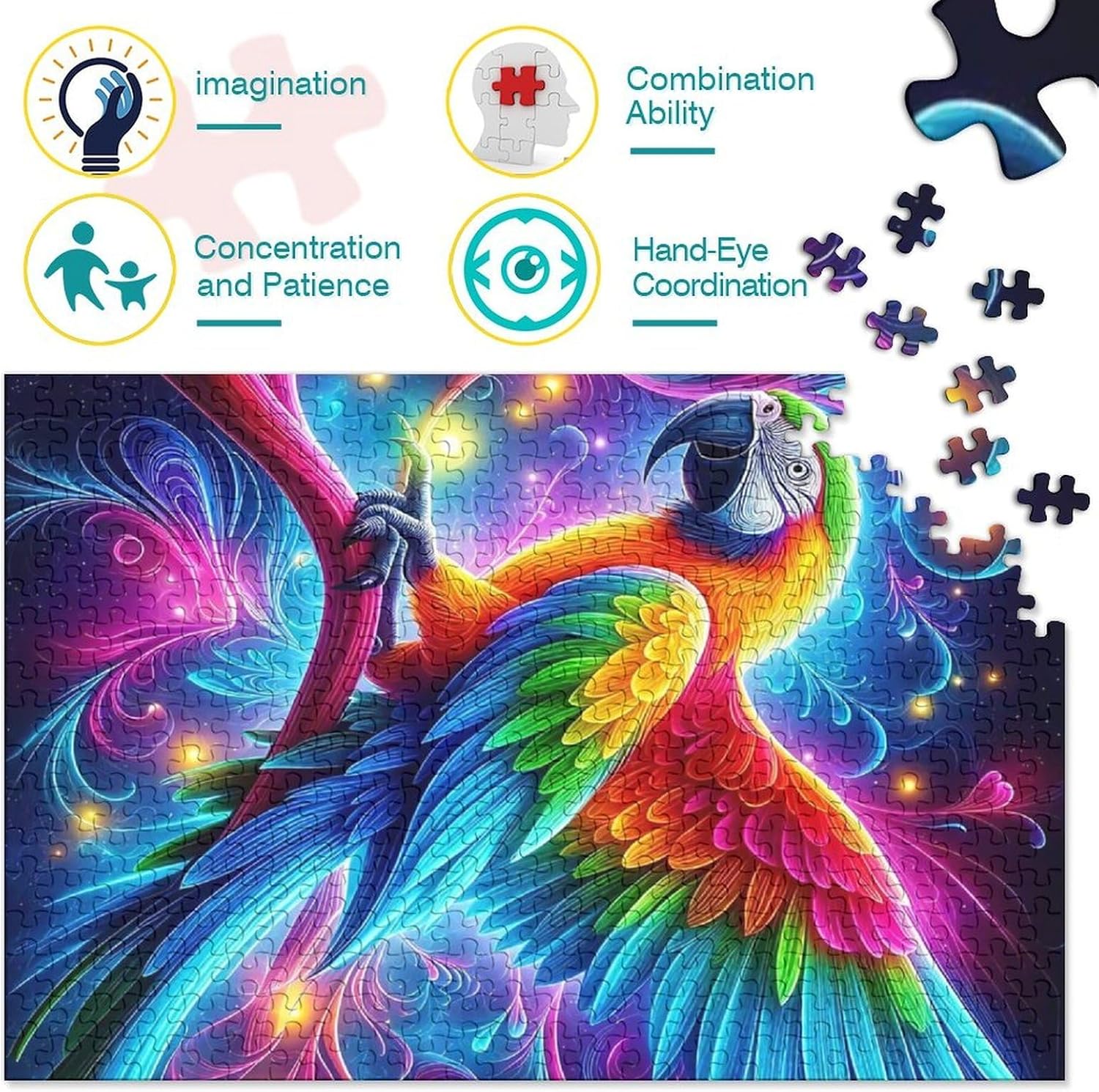 🌸GIOCHI PER ADULTI: una sfida emozionante da regalare a tutti li appassionati di puzzle e amanti dell'arte, ideale per uomo, donna o ragazzi; i puzzle aiutano a esercitare la memoria, migliorano la concentrazione e stimolano l'intuizione 🌸QUALITÀ PREMIUM: il massimo del divertimento con prodotti di altissima qualità in termini di materiali, motivi e design; realizzati in legno tagliati con fustelle fatte a mano, per un risultato impeccabile 🌸Buon regalo: il wild animal puzzle finito misura 38x26cm/1000pcs una volta completato. I migliori regali per ragazzi e ragazze dai 14 anni in su per compleanni o festività (Natale, Halloween, Ringraziamento, ecc.) 🌸Concediti una piacevole pausa relax! La nostra linea di puzzle da Neon Parrot 1000 pezzi è il regalo perfetto per chi ama ritagliarsi un momento di svago e di relax mettendo alla prova le proprie abilità logiche e di concentrazione 🌸I nostri Puzzle ti offrono un'ampia scelta d'immagini capace di soddisfare i gusti di tutti: grazie alla qualità dei materiali riciclati, la robustezza e resistenza dei singoli pezzi insieme alla brillantezza dei colori, ti garantiamo un risultato impeccabile e privo di riflessi