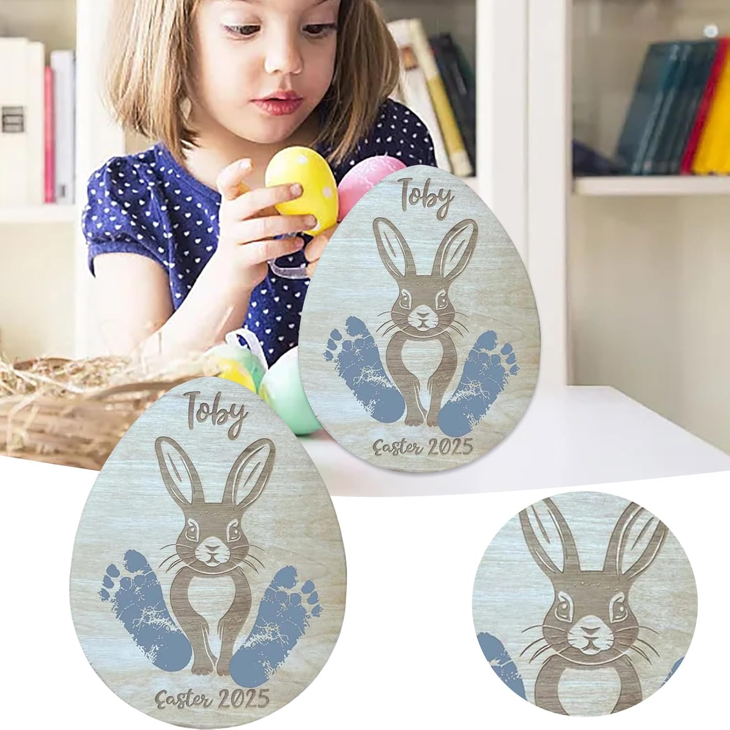 Ideale per i nuovi genitori, famiglie in attesa e donatori che cercano di festeggiare l'arrivo di un bambino, questo cartello artistico è memorabile Queste pietre miliari in legno robuste e facili da usare sono finemente intagliate a mano, garantendo che ogni pezzo sia unico e stabile, per preservare momenti preziosi Questo mestiere consente di creare impronte personalizzate o impronte delle mani, rendendolo una preziosa aggiunta alla tua collezione di ricordi per bambini Per decorazioni per la cameretta dei bambini, baby shower o come sfondo per album fotografici di famiglia, questo pezzo funzionale aggiunge un tocco individuale a qualsiasi ambiente Cattura la memoria del tuo bambino prima Pasqua con questo cartello artistico con impronta pasquale o impronta di mano, un elegante ricordo realizzato in legno e presenta un design di conigli neonati