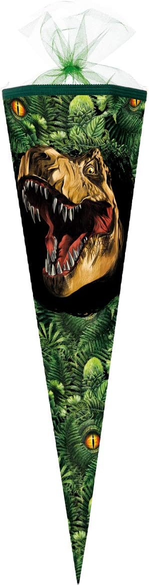 Nestler Set di sacchetti per la scuola da riempire, realizzati a mano in cartone – motivo dinosauro giungla, con protezione a punta, fiocco (85 cm, 6 rettangoli)